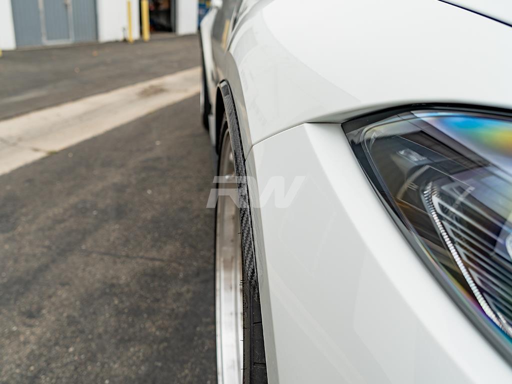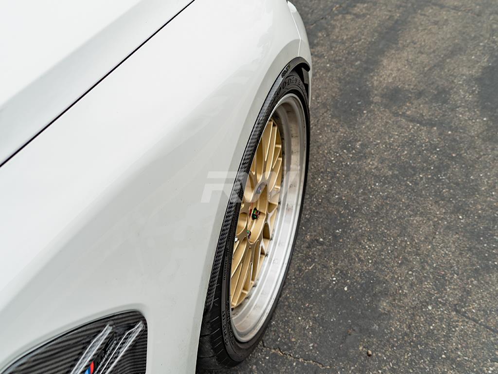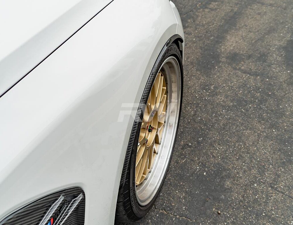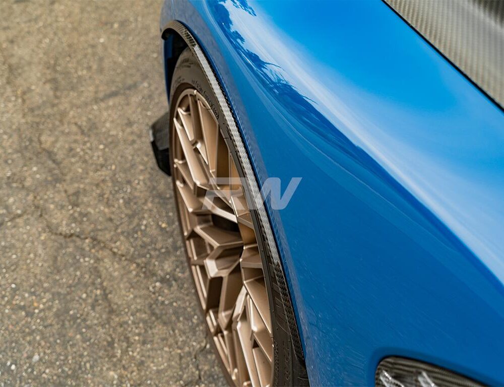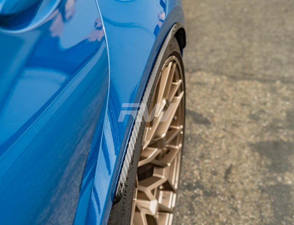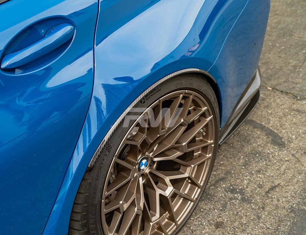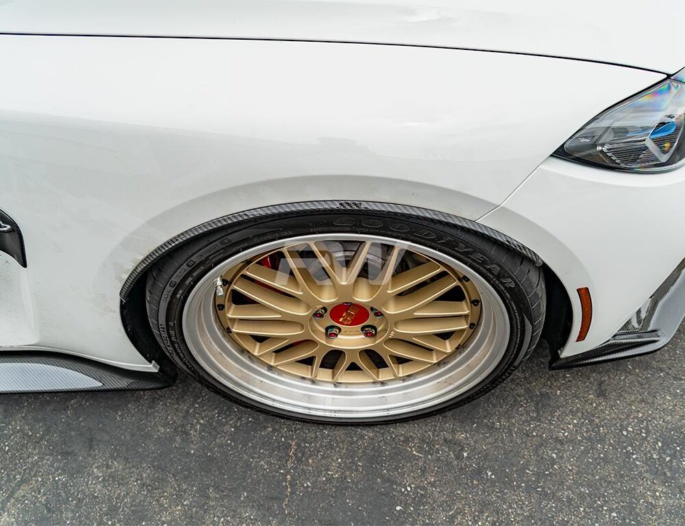 Complete the look of your BMW G80 M3 with our V2 Carbon Fiber Front and Rear Wheel Arch Extensions. These extensions are designed to provide your vehicle with a sleek and sporty stance from the sides. Unlike the V1’s these V2’s come with 4 pieces to fit both the front and back wheel arches. Each piece is a full carbon fiber construction and finished with a high-gloss UV-resistant clear coat for added protection and a lasting shine. The V2 design offers a slightly bolder profile compared to the original version, giving your M3 a standout appearance on the road. Pair them with other carbon fiber accessories for a fully customized and cohesive look. If you have any questions regarding this part, feel free to contact us!