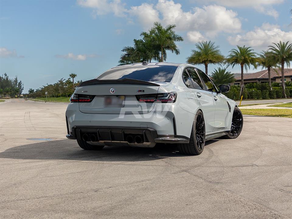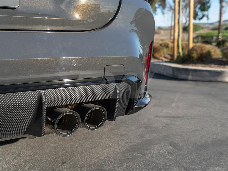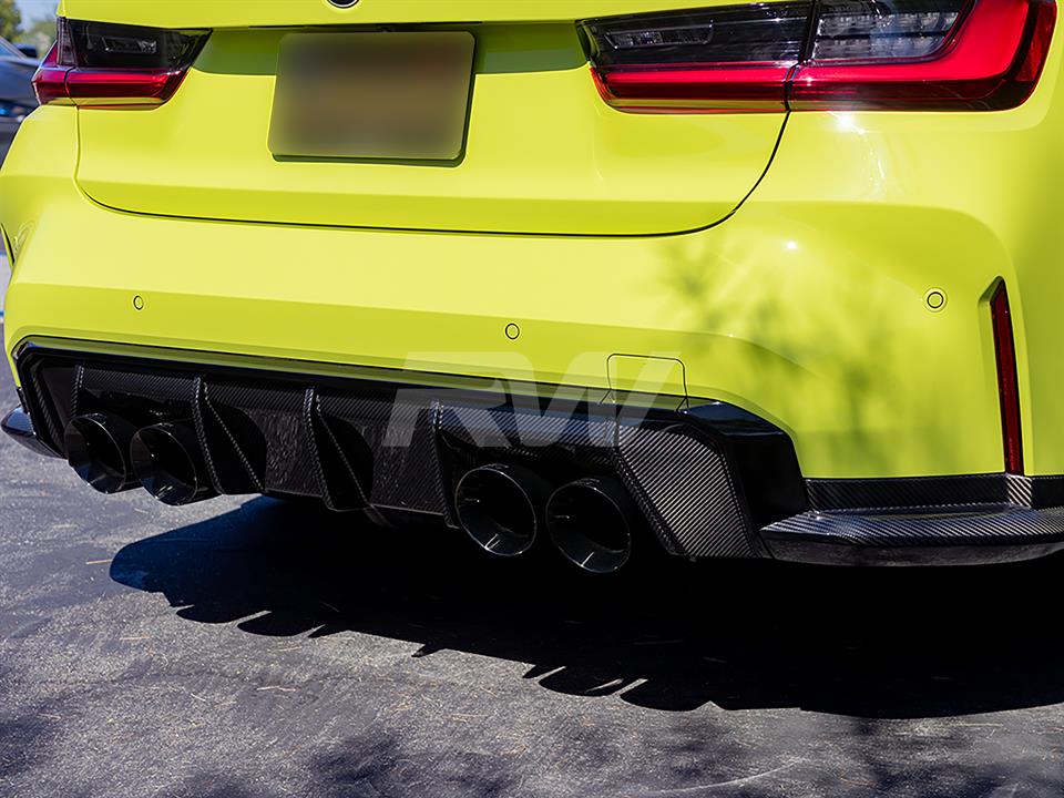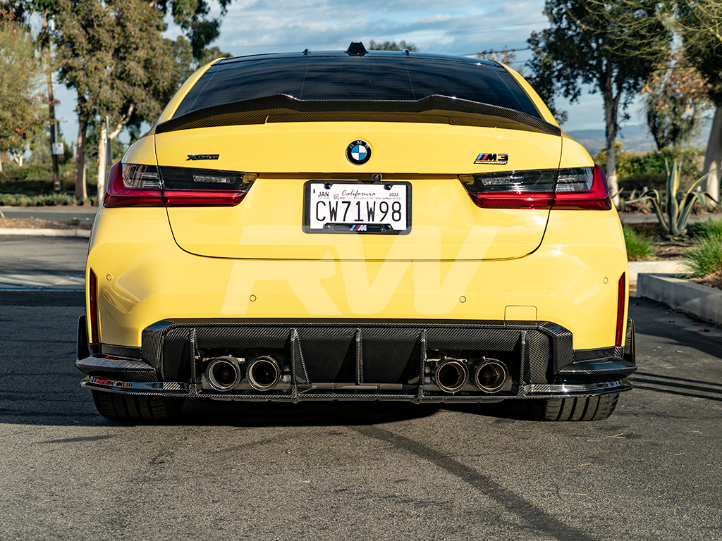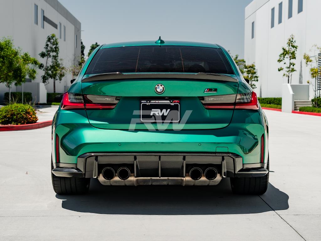 This 3-piece 100% carbon fiber rear diffuser is the perfect item to begin or complete your carbon fiber aero kit for your BMW G80 M3. This diffuser is constructed with high quality full carbon fiber 2×2 weave construction and then clearcoated for a high gloss, showroom finish. Installation is simple and only takes about 1 hour at a professional shop. This full carbon fiber diffuser fits all 2021+ BMW G80 M3 applications and comes with our fitment and quality guarantee. Prior to shipping, we quality check every last G80 diffuser one last time to make sure you are receiving a beautiful looking product that is free of defect. If you have any questions regarding this OEM style CF diffuser for your G80 please contact us.