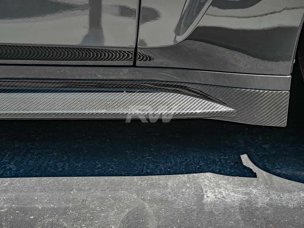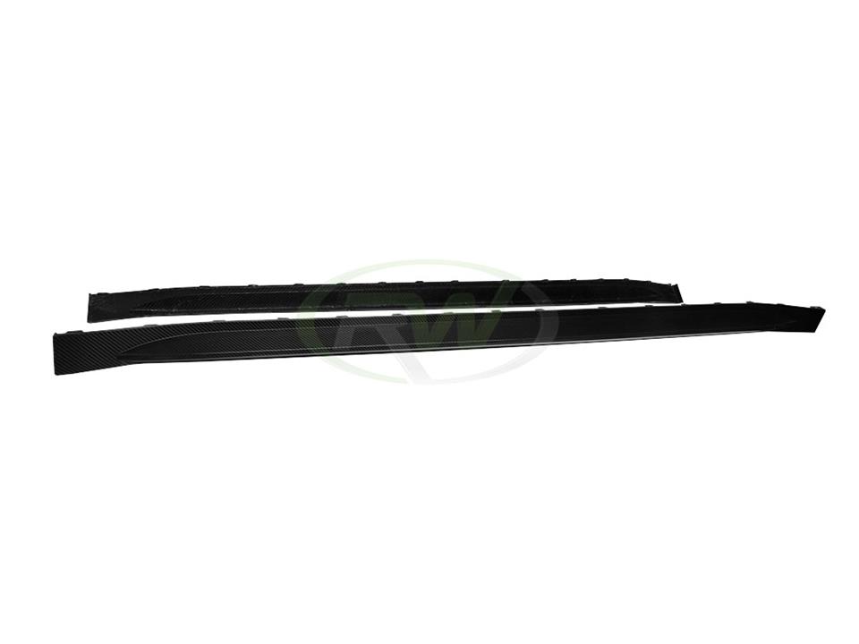 Professional installation is always recommended for RW Carbon’s products including these OEM style side skirt extensions. These OEM style side skirts will simply replace your factory skirts, using the same mounting locations. No modifications are required and installation will take about an hour. Need help? Contact us today or let us install them for you.