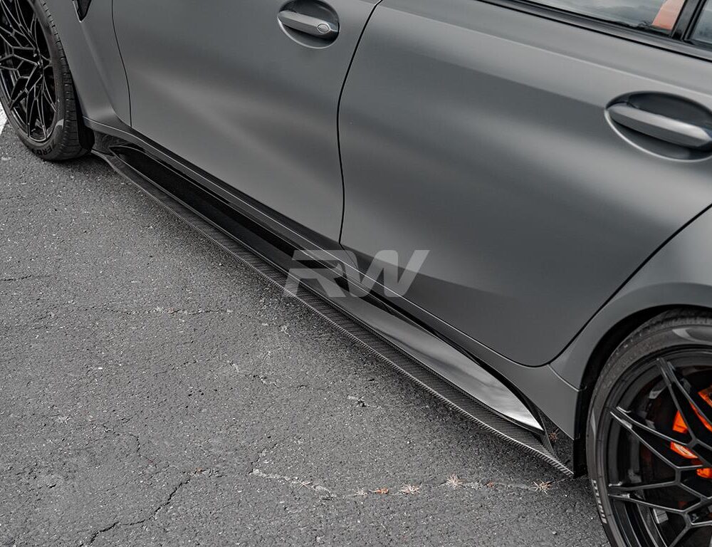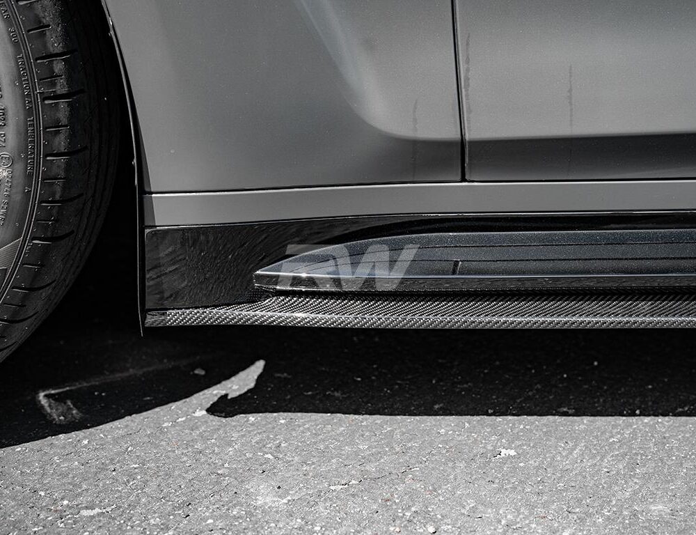 RW Carbon’s very own take on uniquely styled side skirt extensions for your BMW G80 M3 are now available. These side skirt extensions come in a pair and bring a nice sporty look to your G80 M3. These side skirt extensions are built using high quality carbon fiber fabric for a lightweight and rigid product that looks great and comes ready to be installed. These side skirts are covered in a UV resistant clearcoat for a high gloss finish that not only looks great, but help protect your new skirts for thousands of miles of hard driving. These mount using 8-10 self tapping screws and can be done in under an hour. Each and every set is always backed by RW Carbon’s superior fitment and quality guarantee. If you need any further help, please contact us.