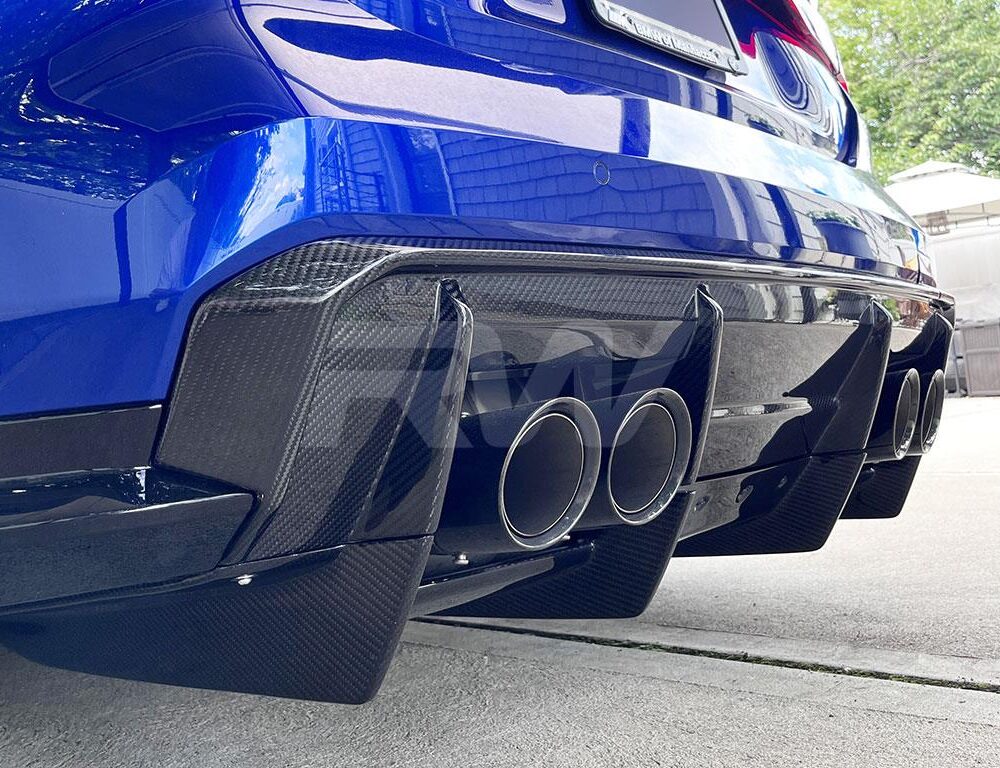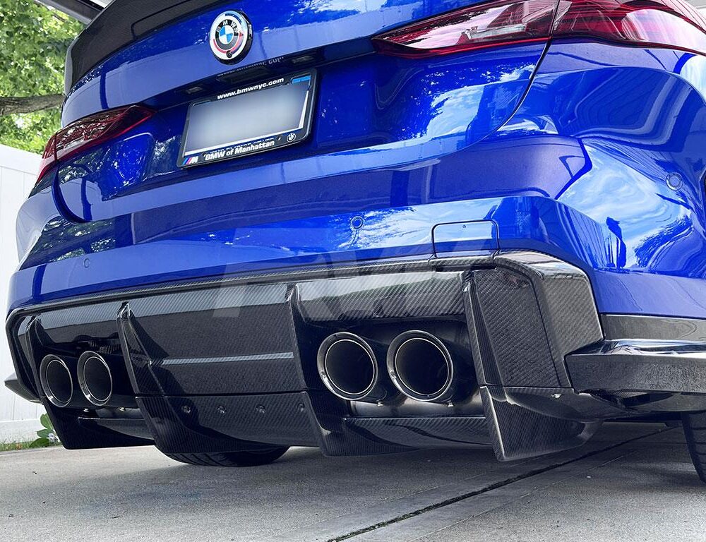 The BMW G82 G83 M4 Carbon Fiber GTX Diffuser+Undertray offers an aggressive and intricate upgrade for your BMW. Crafted from real carbon fiber in a 2×2 weave pattern, this diffuser not only ensures durability but also enhances the rear with a stylish look, pairing seamlessly with a trunk spoiler for a complete appearance. The 7-piece kit includes the diffuser, undertray, and hardware for installation. Given the complexity and size of the diffuser, professional installation is recommended to achieve perfect fitment. Each piece undergoes thorough quality checks and is packaged for safe delivery, ensuring you receive a brand new part in perfect condition.