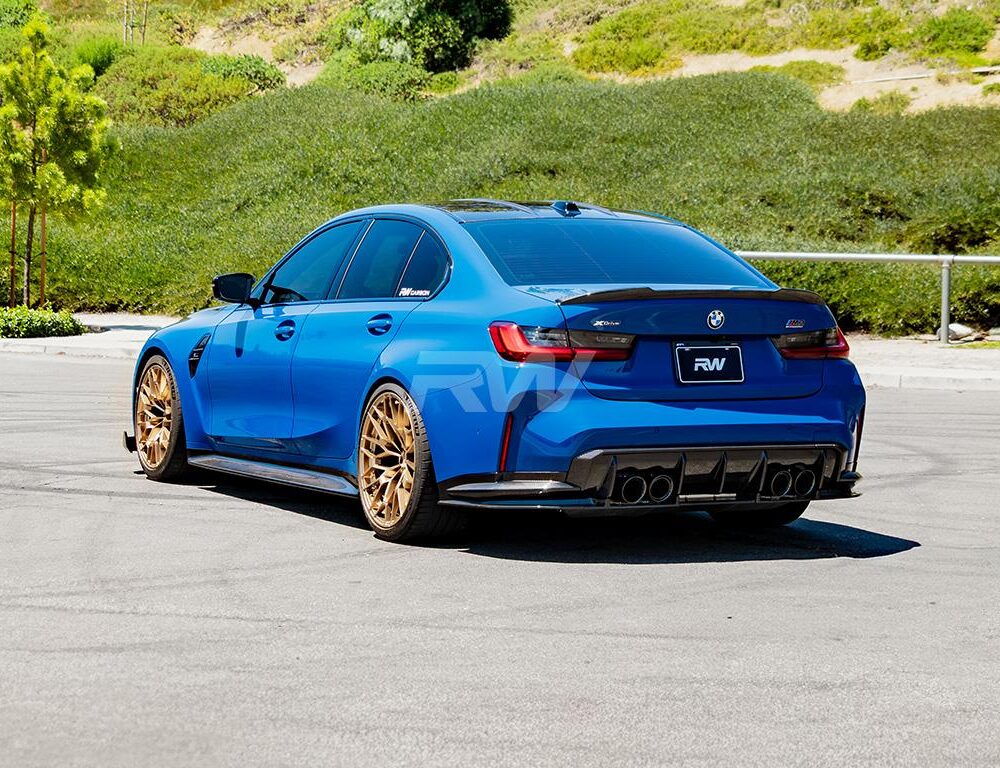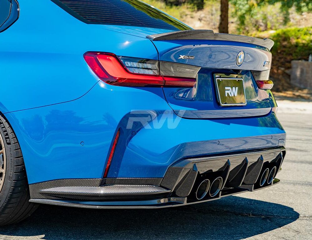 Normally these OEM style carbon fiber rear diffuser sides are sold together with our OEM style center diffusers. If you already have a center diffuser for your 2021+ BMW G82 and G83 M4, then you can now purchase the side pieces separately and save money. These side pieces go great with our other OEM or Performance style carbon fiber parts. They are made using 100% dry carbon fiber, just like our other CF pieces for the G82/G83 M4. To ensure that the diffuser pieces have a lasting shine and shimmer we finish off each piece with a thick and high quality clear coat. Installation is 100% bolt on, simply unbolt your factory diffuser sides and mount ours using the same mounting points as OE. Choose RW Carbon for your G8x M4 carbon fiber needs and receive a product you can be proud to install on your vehicle.