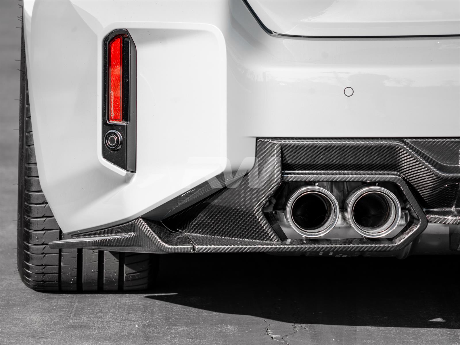 Take your 2023+ BMW G87 M2 to the next level with our Full Carbon Fiber DTM Diffuser. Meticulously crafted in genuine 2×2 weave dry carbon fiber, perfectly complementing other carbon fiber parts from RW Carbon. The thick, high-quality clear coat ensures lasting brilliance. Easy bolt-on installation using existing mounting points. This DTM diffuser is big, bold and in your face. It is by are most uniquely designed diffuser that we offer and is always an instant show stopper. These are stocked and shipped from our location in Anaheim CA. Prior to shipping we QC each diffuser one last time to ensure you are receiving a defect free product.