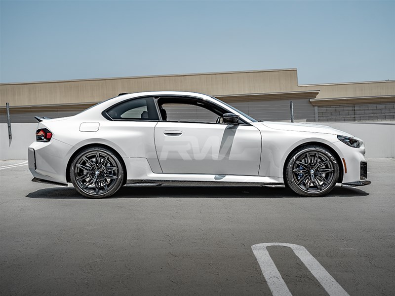 Professional installation is always recommended for RW Carbon’s products including these BMW G87 M2 side skirt extensions. Installation requires 8-10 screws per each side and 2-3 people.