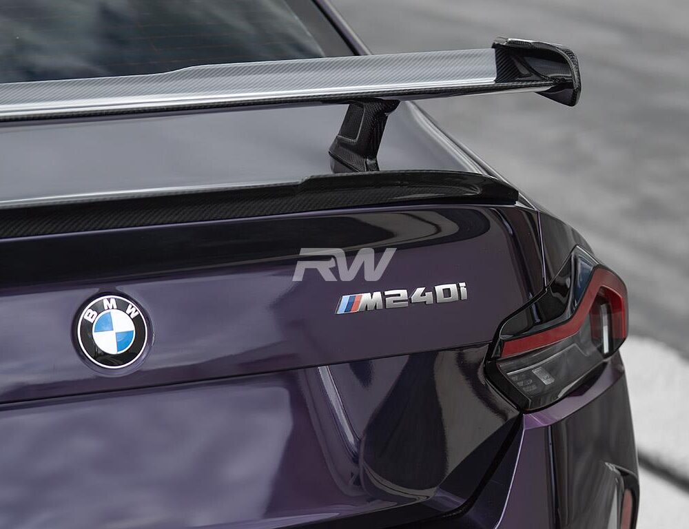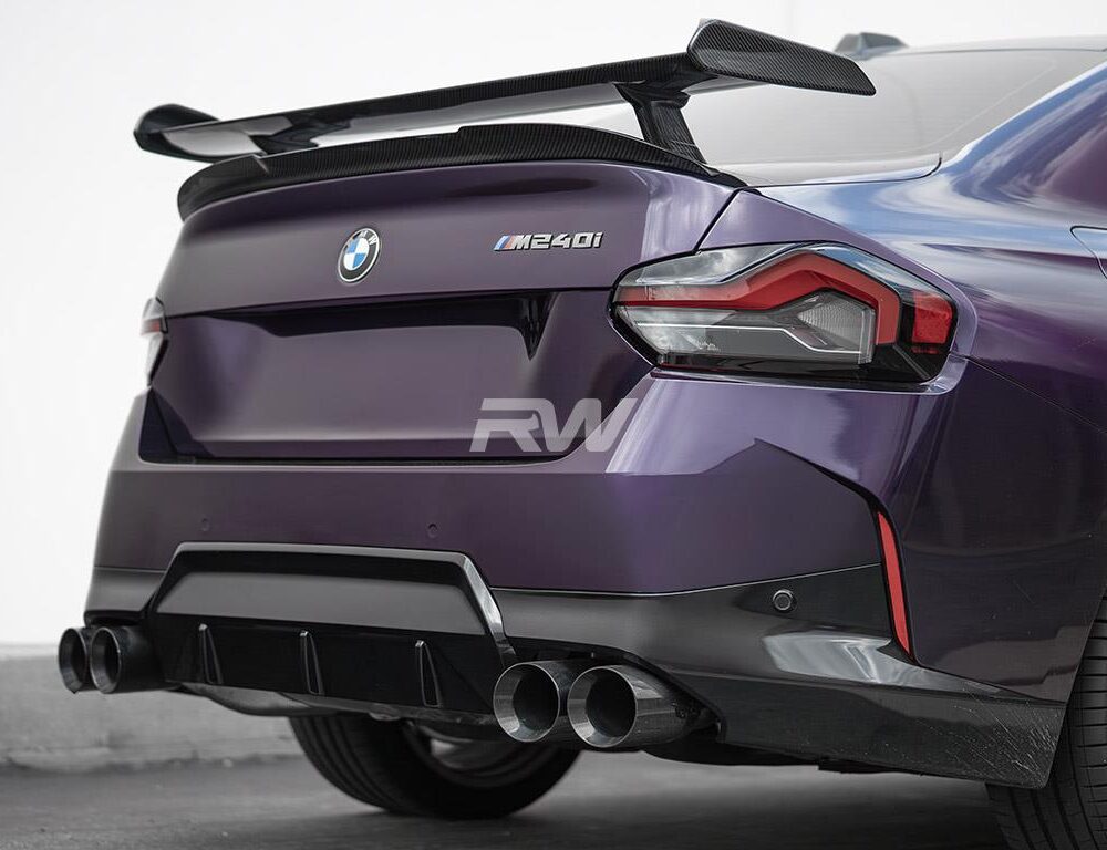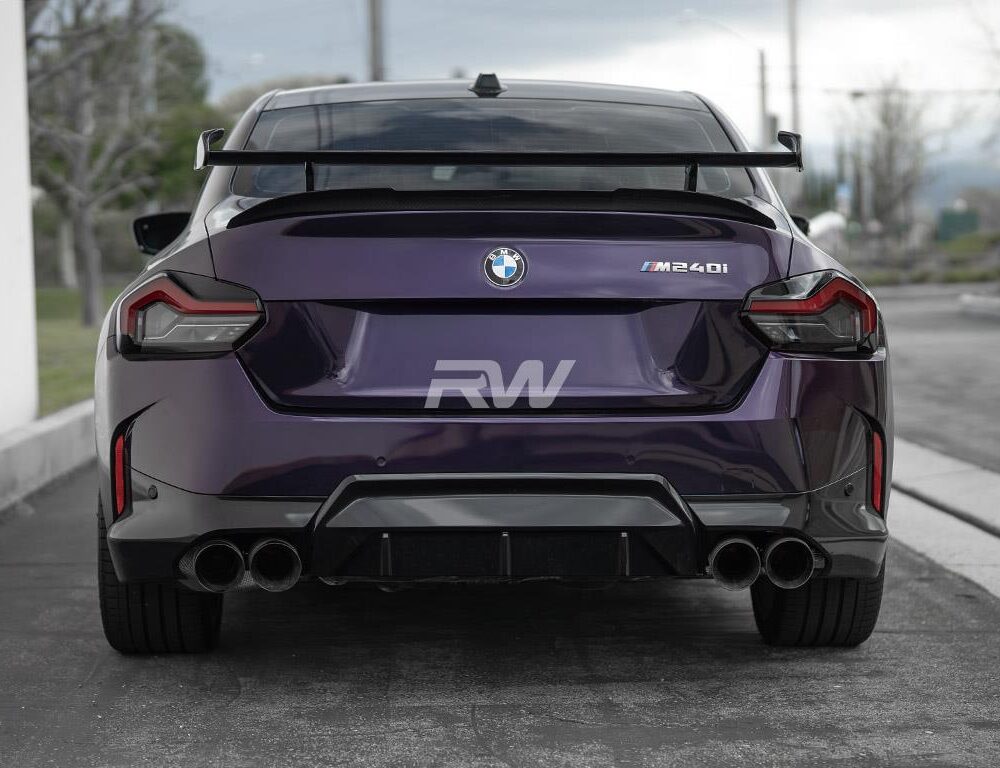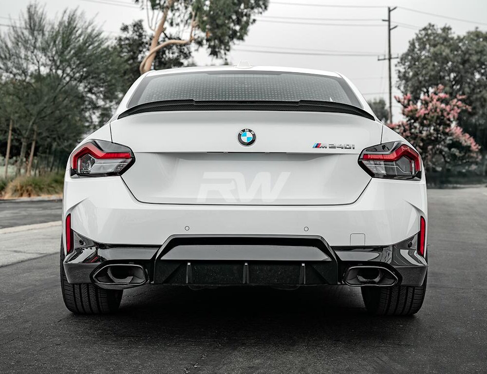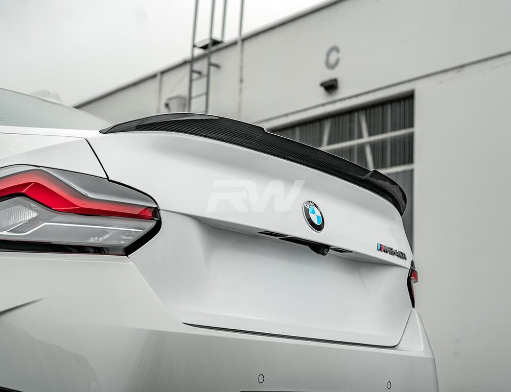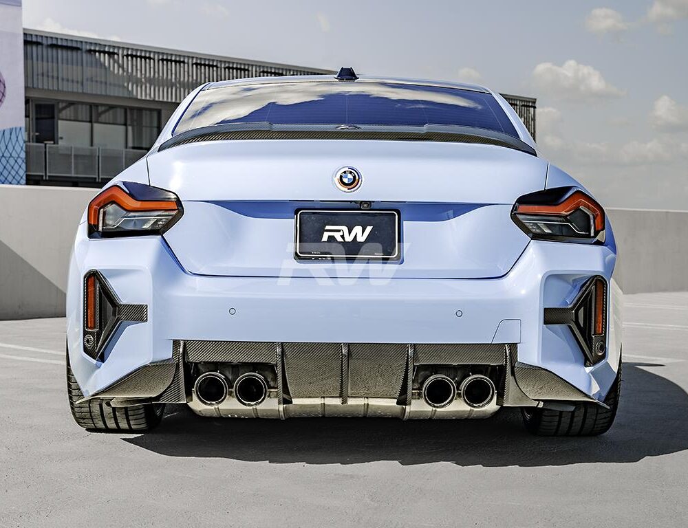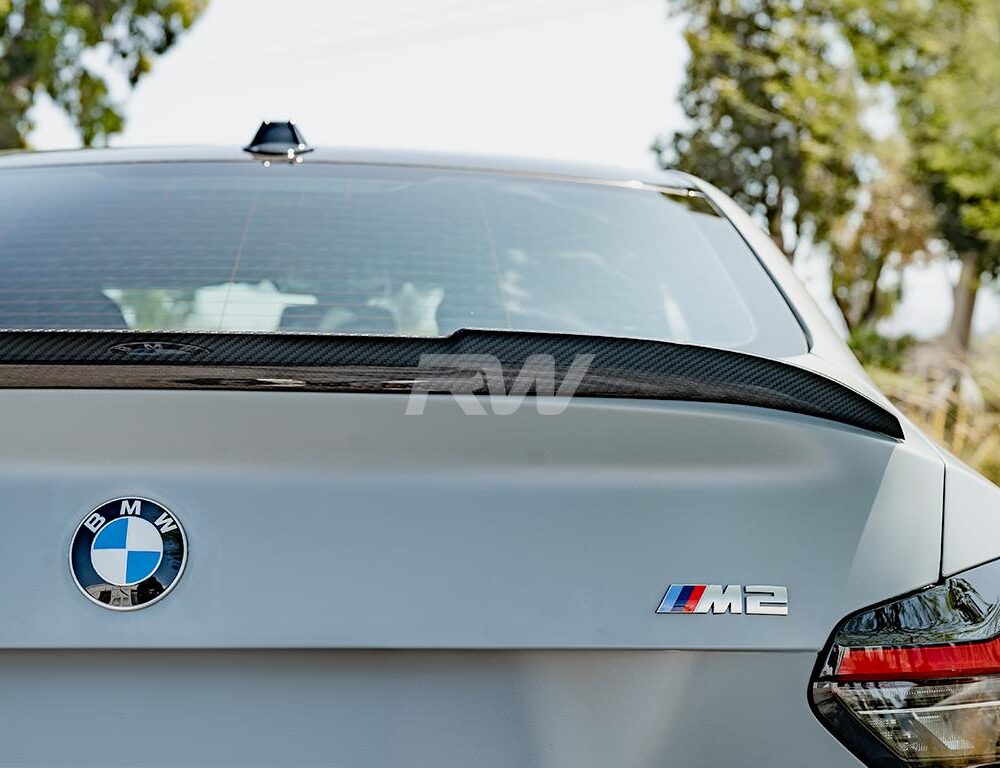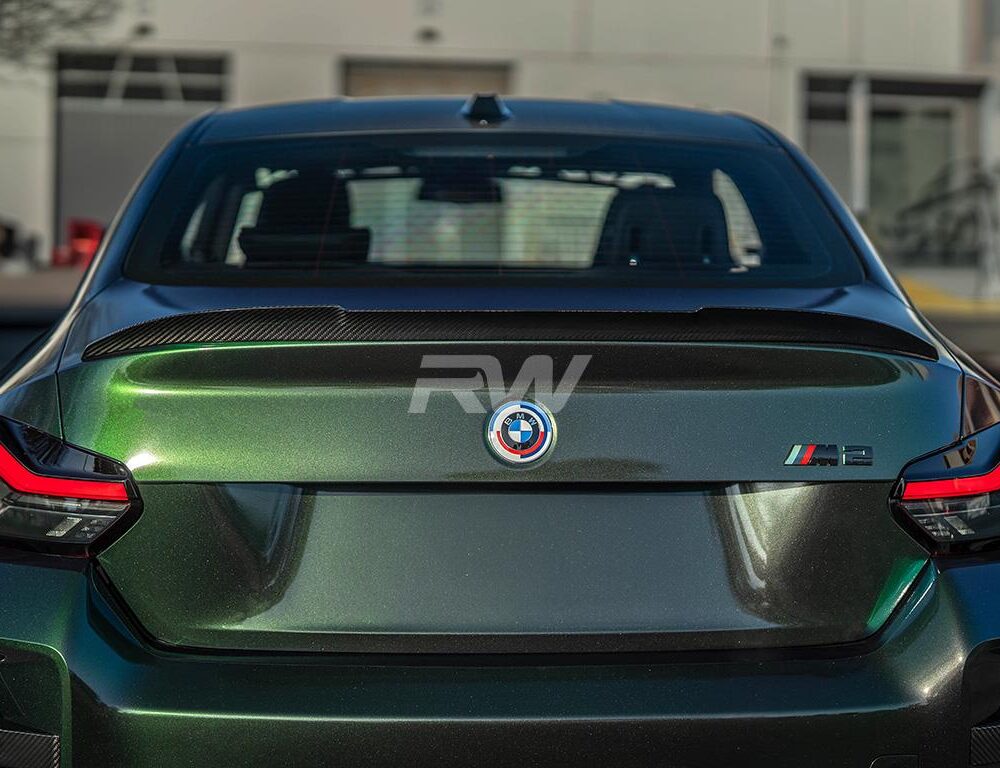 This RW Signatures trunk spoiler is designed in-house at RW Carbon to perfectly pair with our RWS front lip, diffuser and side skirt extensions. We’ve also extended our acclaimed trunk spoiler design from the M2 to fit the BMW G87 M2 and G42 2-Series. Backed by factory fitment and quality assurance, our RWS trunk spoiler is thoroughly inspected before global shipping. Each spoiler is finished with a clear coat that will help protect against UV rays, dirt, and other debris that you may come across. Installing is straightforward, as it only requires 3M double-sided VHB tape. Elevate your BMW’s appearance with the new RWS trunk spoiler that’ll make your G87 M2 or G42 stand out.
