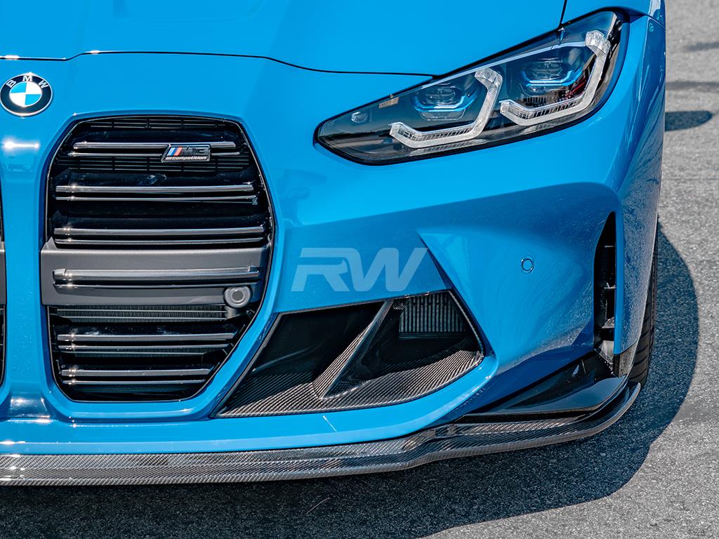 Get rid of those boring brake duct trims that came installed on your G80 M3 and G82 G83 M4 and upgrade them to carbon fiber. RW Carbon now has replacement style carbon fiber front brake duct trims for the G8X that simply replace your OEM trims and re-use the same mounting locations. We hand craft each G8X M3/M4 carbon fiber front brake trim set from 100% genuine carbon fiber that will nicely match any other RW or OEM parts you have installed on your BMW. Just like all RW products these carbon fiber front trims are bolt on and do not require any special modifications to your G8X. Fits all 2021+ BMW G8X M3 and M4 applications.