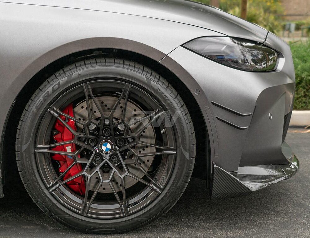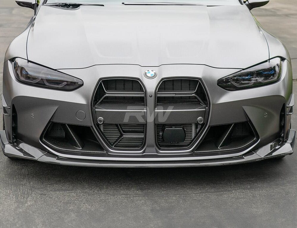 Skip to contentGet that track-like appearance for your 2021+ BMW G80 M3 and G82/G83 M4 with a shiny new set of RW Carbon fiber canards. These canards feature genuine 2×2 carbon fiber weave that will match any other RW carbon parts or OEM carbon fiber parts that you may have on your G8X M3/M4. Each order includes both the left and the right side canards. All canards are finished with a UV resistant clearcoat to ensure no fading or discoloring occurs. Installation can be completed by any enthusiast as these BMW G8X M3/M4 carbon fiber canards simply install with 3m double sided tape.