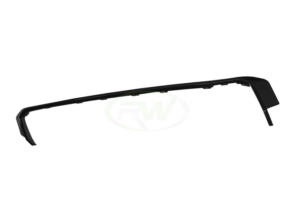 This BMW G80 M3 and G82 G83 M4 Carbon Fiber Outer Diffuser Trim is a great addition to complete your G8x diffuser upgrade. This piece will mount on the outside of your OEM or RW Carbon diffuser and will replace your OEM gloss black trim, giving you a more complete and aggressive look. The G8X M3/M4 Carbon Fiber Diffuser Trim will seamlessly match other RW or OEM parts you have on the vehicle as we craft them from genuine 2×2 weave carbon fiber. We know our customers care deeply about the parts they choose to install on their vehicle which is why we only use the highest quality carbon fiber fabric, clearcoats, and resin in the making of our products. Just like the rest of our products, this carbon fiber diffuser trim comes with the RW superior fitment and quality guarantee. Installation is purely bolt-on and does not require and special modifications or cutting.