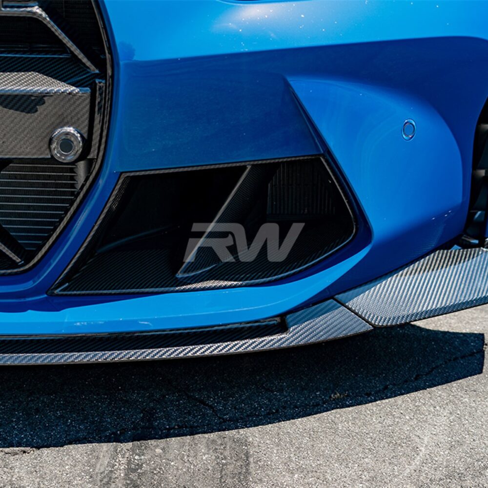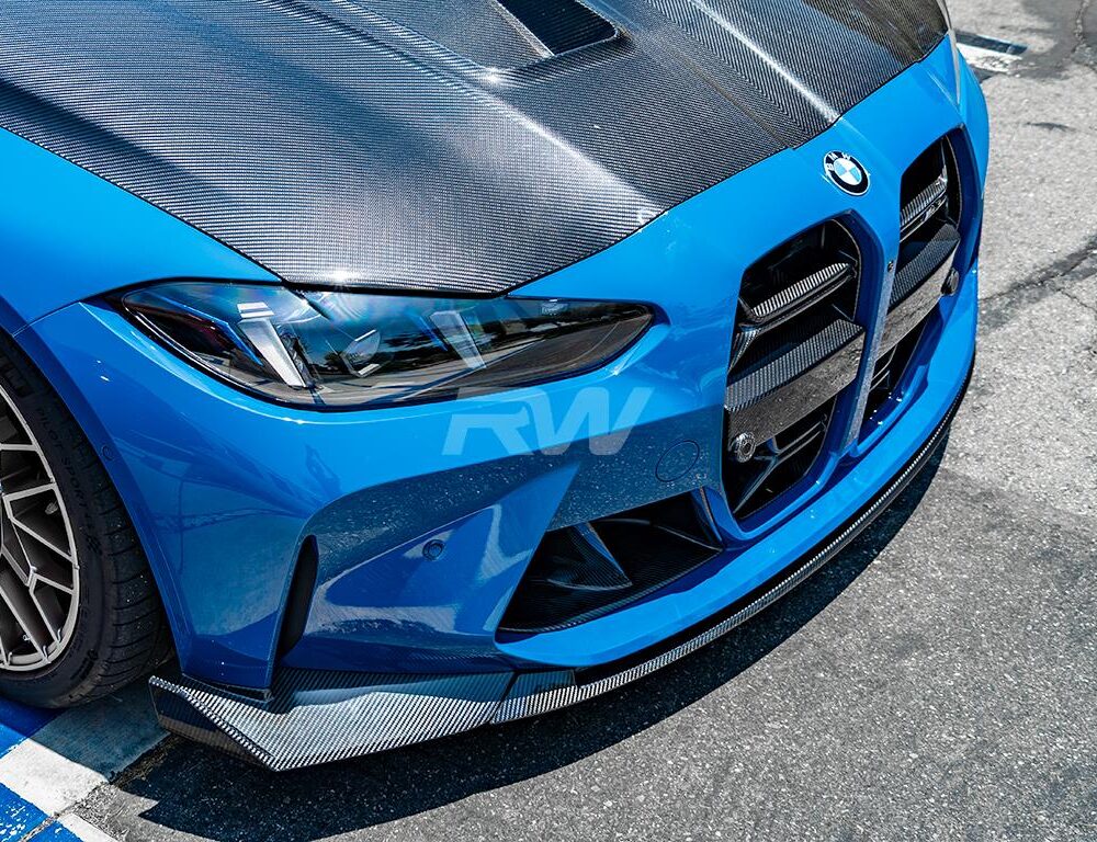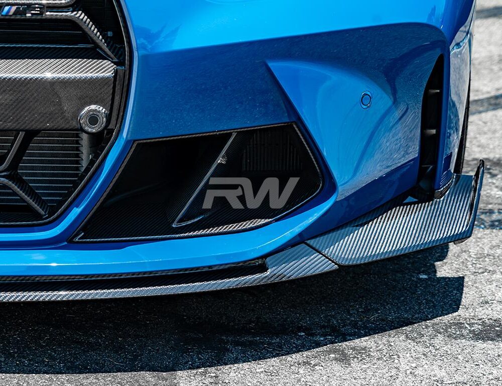 RW Carbon has added a new carbon fiber product to our lineup with this CS Style Front Lip for the G8X M3 and M4. This front lip comes in a 3-piece design and is made using 100% dry carbon fiber. It follows the factory lines of the G80, G82, and G83 for a clean, sleek look without sacrificing too much ground clearance. Each piece is finished with a UV-resistant clear coat to maintain a glossy shine while also protecting it from dust and debris you may come across while you drive. This front lip is perfect for starting your carbon fiber journey and pairs perfectly with
