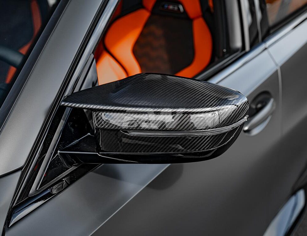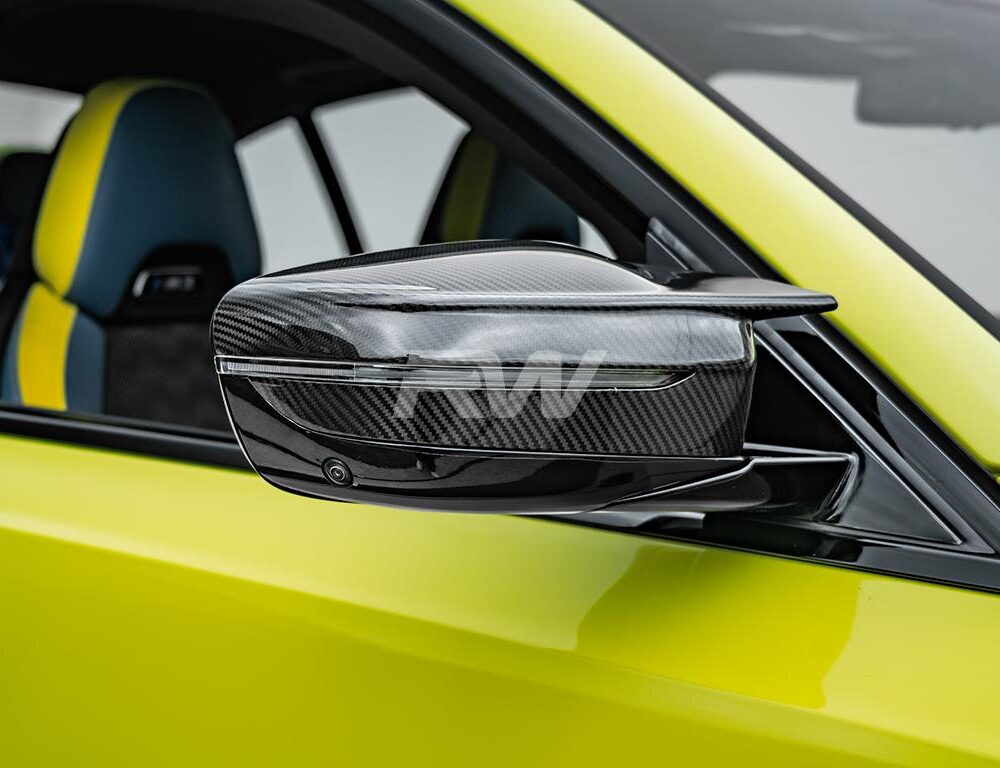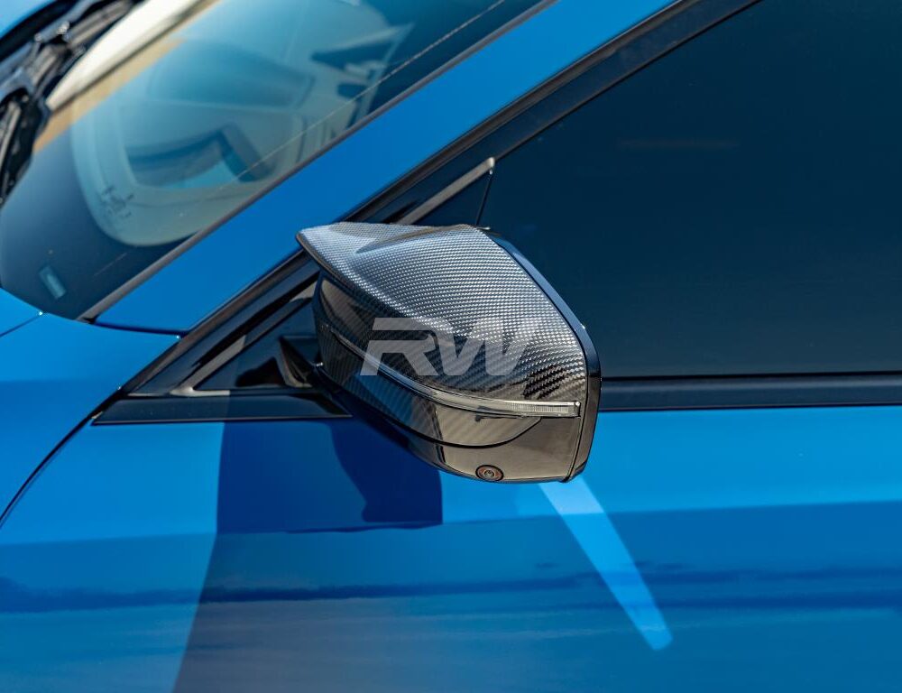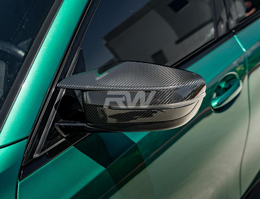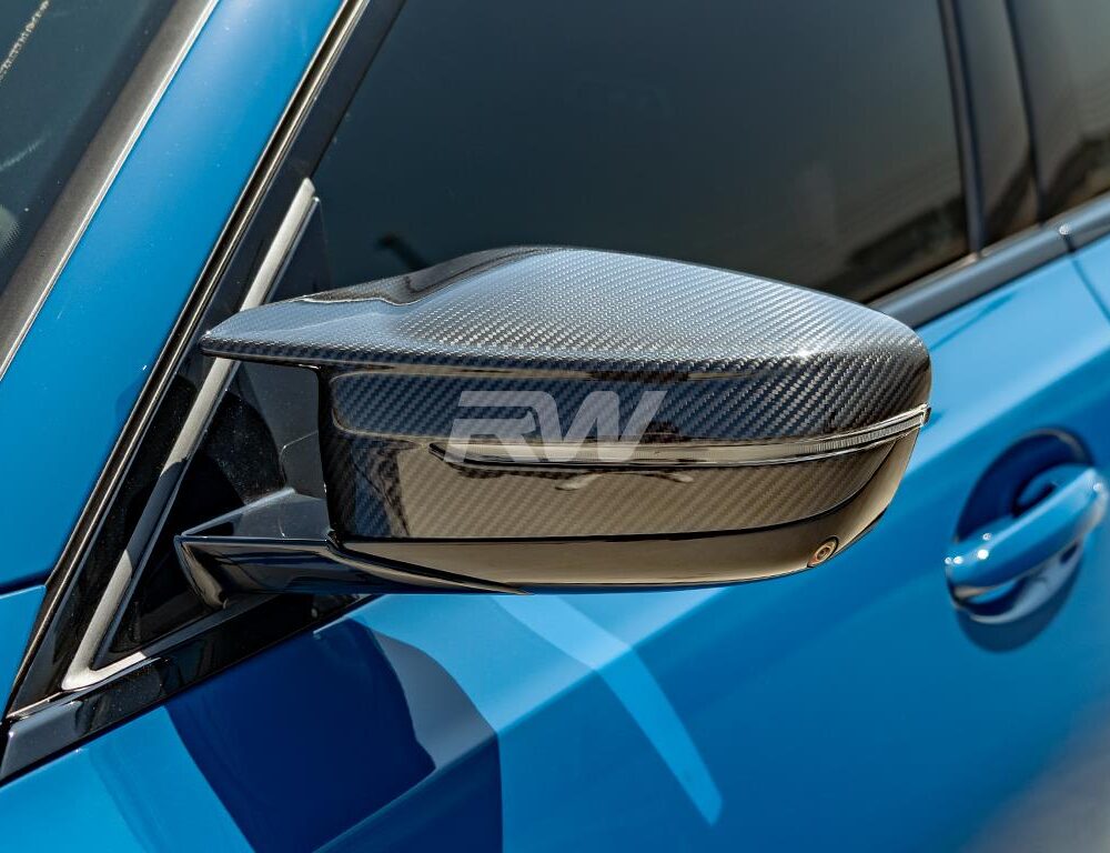 Enhance your carbon fiber experience further with a set of these RW Carbon Fiber Mirror Cap Replacements for the G8X M3/M4 and i4 M50. These mirror caps are full replacement types so rather than sticking on over your existing mirrors they fully replace your painted housing. The RW carbon fiber mirror replacements are produced with 100% full carbon fiber and have a perfect fit & finish. Full CF mirrors have improved weave quality, and a much longer product life compared to plastic based mirrors. Installation for the G8X and i4 carbon fiber mirrors is quite simple and takes about 30 mins depending on your skill level. RW Carbon is committed to bringing you only the best quality carbon fiber items for your M3/M4 and these replacement carbon fiber mirrors are no exception! Please note, these are Left-Hand Drive only.