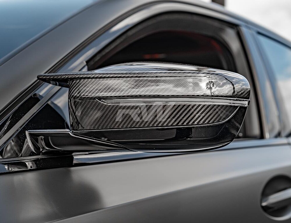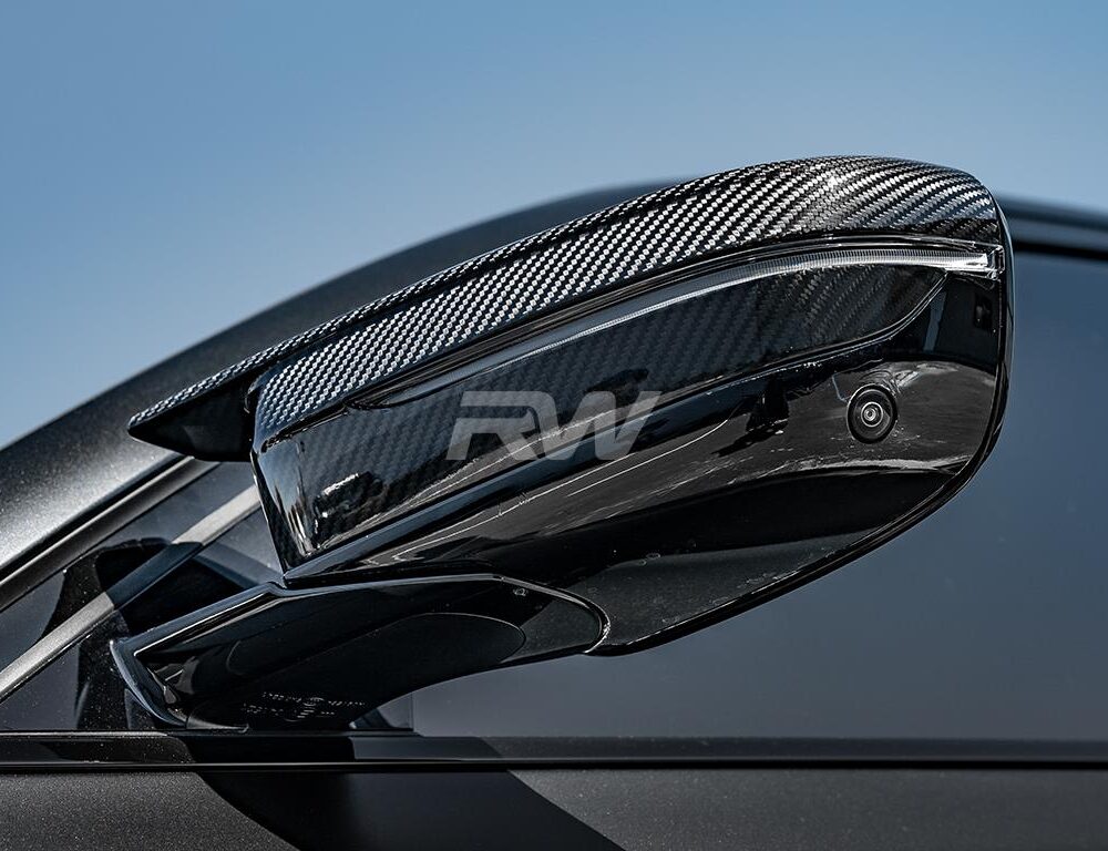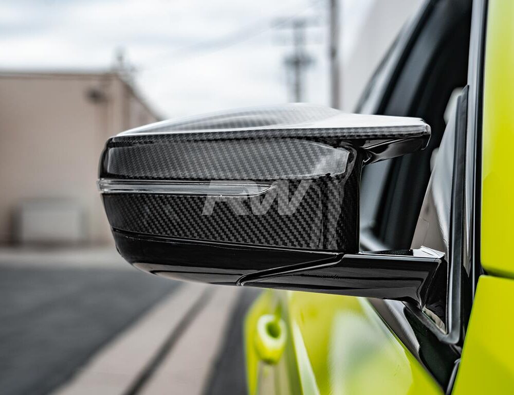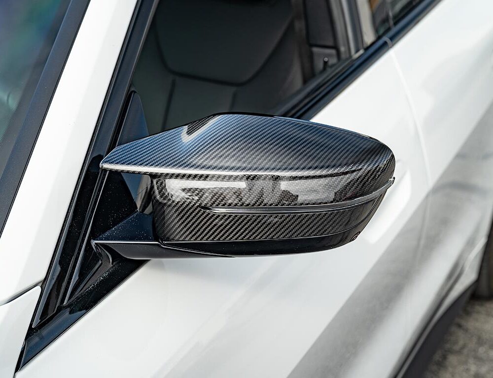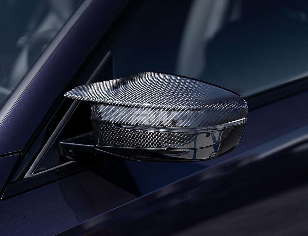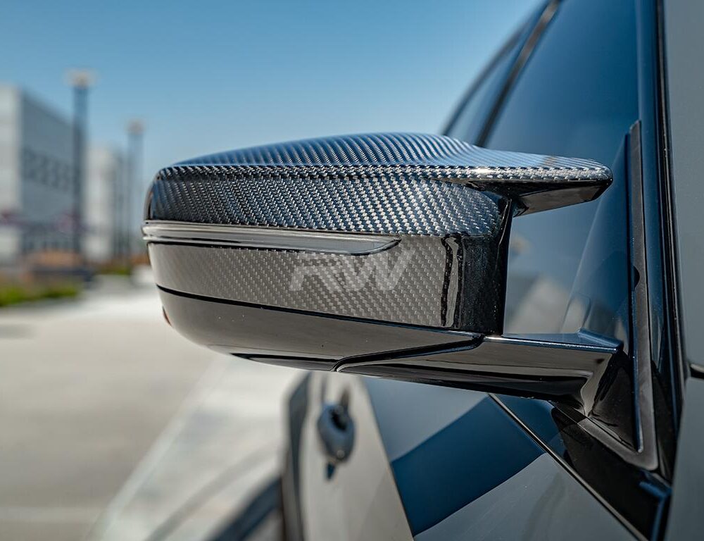 We at RW Carbon urge you to get these carbon fiber G8X mirror caps installed professionally. These mirror caps will replace the OEM painted housing and will install using the same mounting locations as the OEM mirror caps.