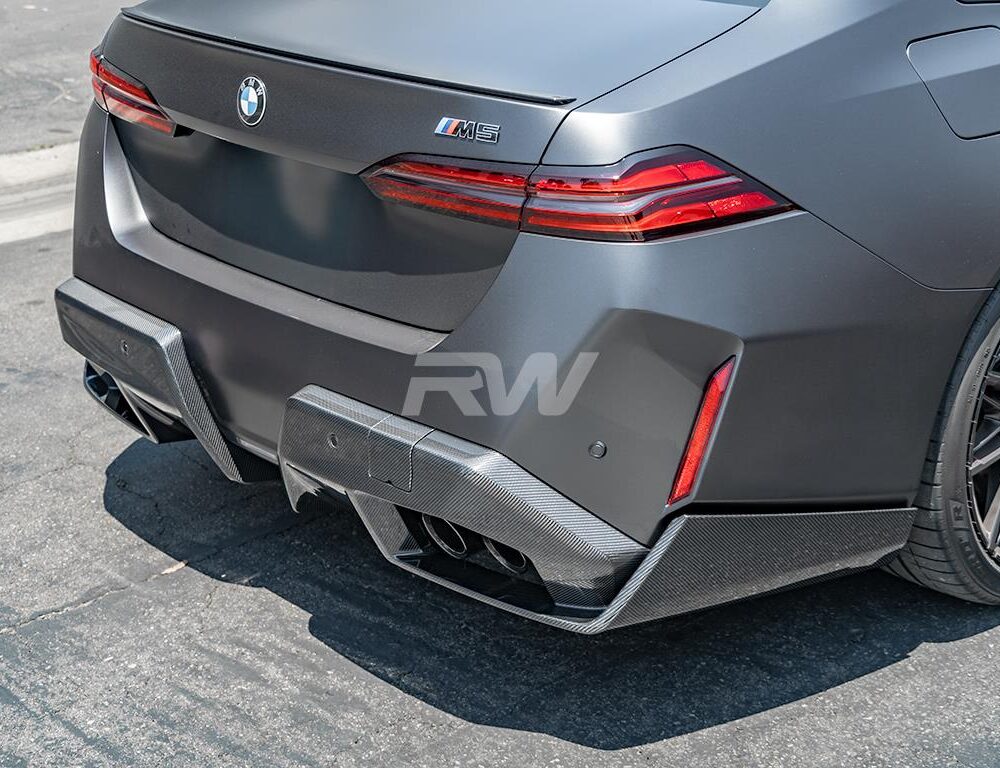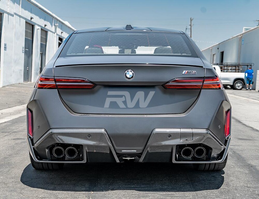 Transform the look of your G90/G99 M5 with RW Carbon’s Performance Style Carbon Fiber Diffuser. This premium diffuser is crafted to give your BMW an aggressive, sport-inspired appearance while maintaining a high standard of quality and fitment. Constructed from 2×2 carbon fiber weave, this diffuser is finished with a high-gloss clear coat to ensure longevity and a seamless blend with your existing carbon fiber or exterior trim. Each diffuser is rigorously quality-checked at our Southern California facility before shipment to guarantee you receive a flawless product that meets our standards.