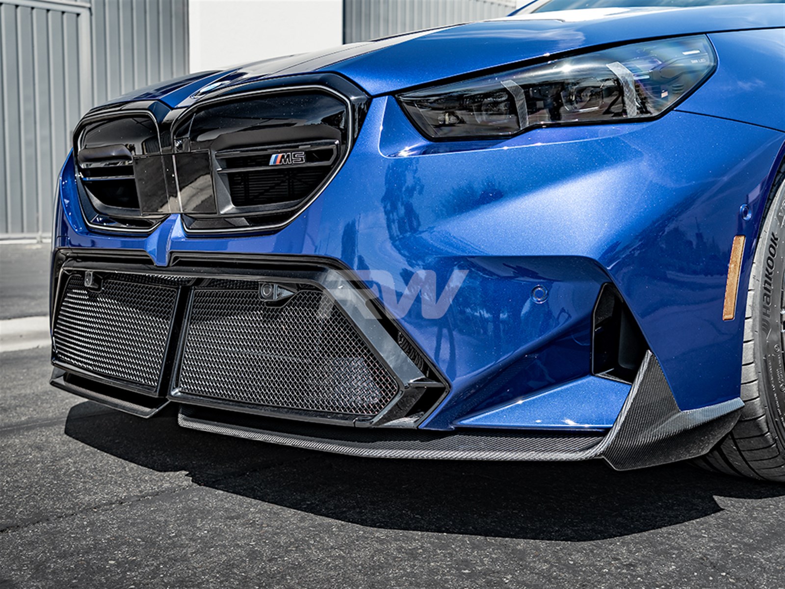 Elevate the look of your BMW G90/G99 M5 with the RW Carbon Performance Style carbon fiber front lip. This OEM style upgrade is crafted with precision using 2×2 carbon fiber weave and finished with a clear coat to withstand daily use and environmental exposure. Each front lip is meticulously inspected at our Southern California facility to ensure a flawless product before shipping. Installation is straightforward, making it an easy enhancement to the front end of your G90/G99 M5 for an unmatched appearance.