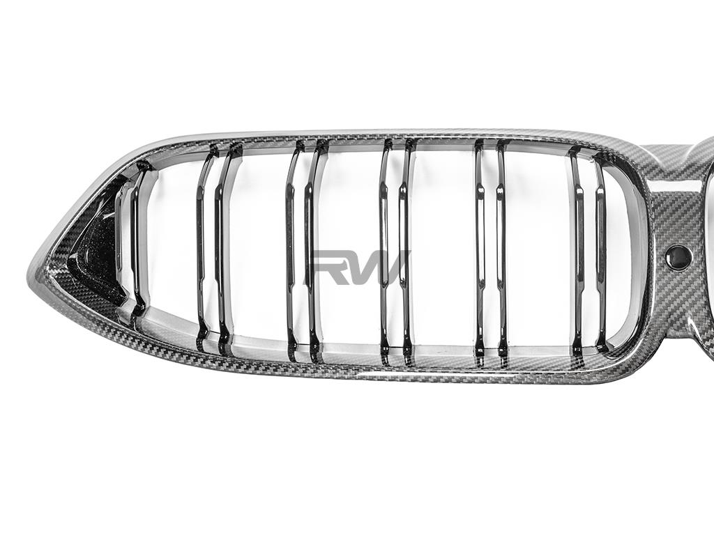 Are you looking for the perfect item to enhance the front end of your F91/F92/F93 M8 or G14 G15 G16 8-Series? These BMW F91/F92/F93 M8 and G14 G15 G16 8-Series carbon fiber dual slat grilles will give you that aggressive carbon fiber styling while maintaining a classic BMW look. Each one is made using high-quality carbon fiber and is very simple to install. These full carbon fiber grille replace the existing grilles and clip into the same mounting locations. Each grille is clear coated for a high gloss finish and quality checked prior to shipping. All of our products are backed by a fitment and quality guarantee to ensure that these grilles have top-notch quality and fitment.
