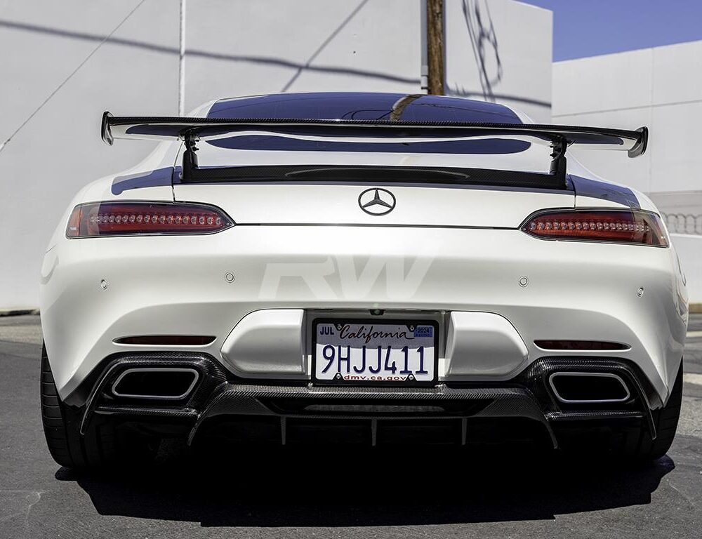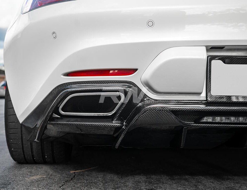 Take the exterior appearance of your Mercedes GT or GTS to the next level with our carbon fiber rear diffuser. This CF C190 and R190 rear diffuser replaces the bland looking OEM black plastic rear portion of the bumper for a greatly updated and aggressive look. Each Mercedes GT or GTS carbon fiber rear diffuser is hand crafted from genuine 100% CF – No fiberglass is used on this item. After creation, we finish the diffuser with a special epoxy clearcoat which produces a finish that is more resilient than other carbon fiber items on the market. Each and every diffuser gets quality checked and polished prior to shipping to make sure you receive a beautiful looking product. Due to the large size of this item professional installation is highly recommended. Upgrade your C190’s style with confidence, we back all GT/GTS carbon fiber parts we sell with our fitment and quality guarantee.