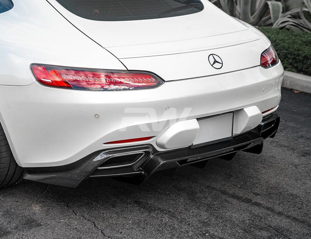 This carbon fiber rear diffuser for the Mercedes C190 GT and GTS is rated difficult for installation. RW Carbon highly recommends that this product be taken to a Mercedes specialist. This item will replace the OEM diffuser and will re-use existing mounting locations. The rear bumper will also need to be removed. Installation usually takes 3-4 hours. If you have any questions or would like a quote for us to install it please give us a ring.
