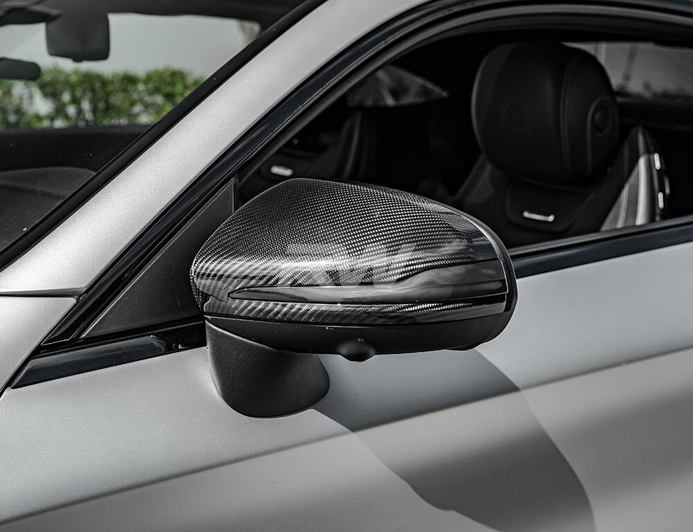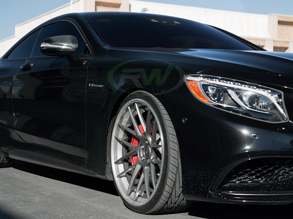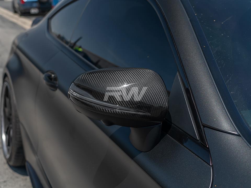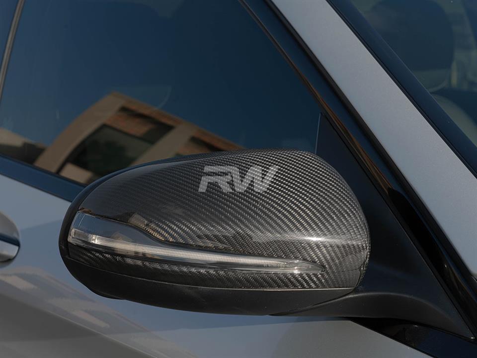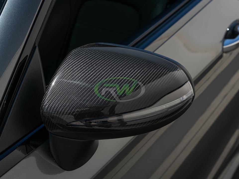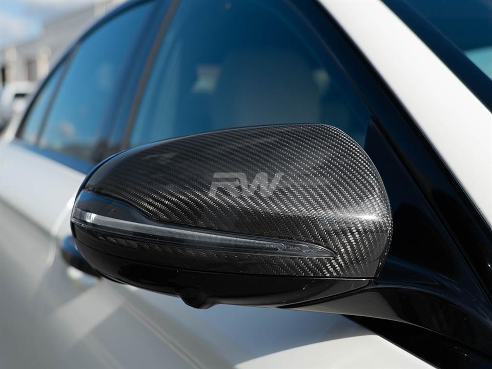 RW Carbon is now making carbon fiber mirror replacements for the new Mercedes W205, W213, C217, and W222 Models. These fit the C300, C400, C450, C43, and C63/C63SÂ AMGÂ models, as well as all 2014+ W222/C217 S Class and all 2016+ W213 E Class. These carbon fiber mirrors are caps full, replace your current mirror for a seamless finish that looks great from far and up close. Now each set of carbon fiber replacement mirrors features 100% carbon fiber construction! No plastic backing like the competitor products which allows our mirrors to last much longer and maintain a higher quality appearance. Each set of coated with a high-quality coat of clear for the brilliant shine and the best protection against the elements.