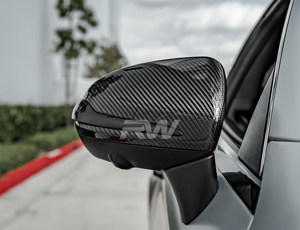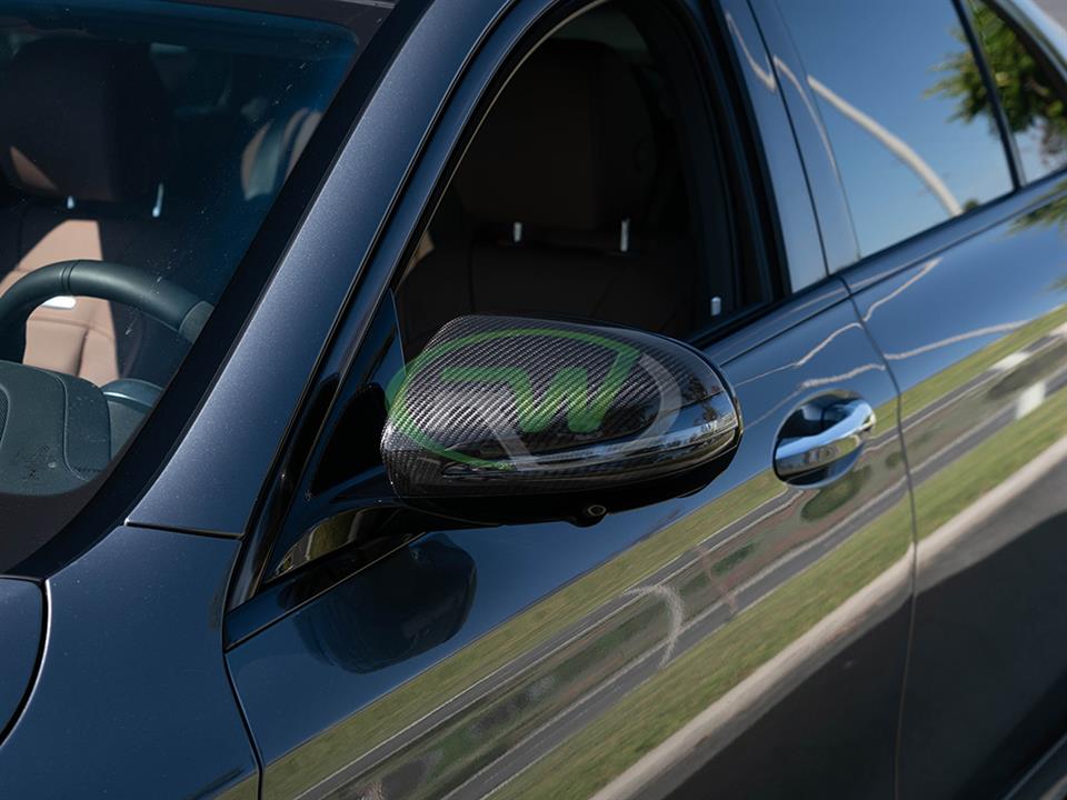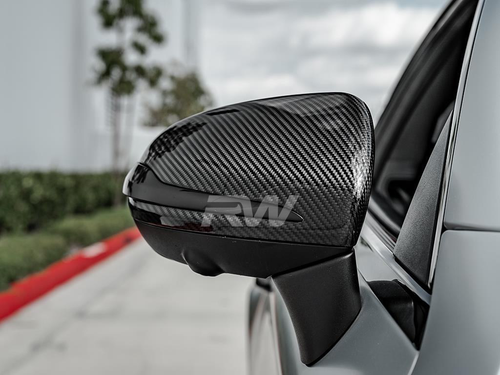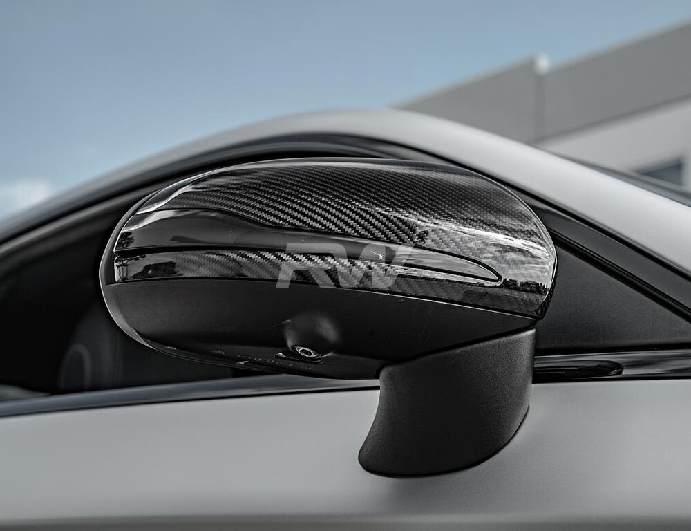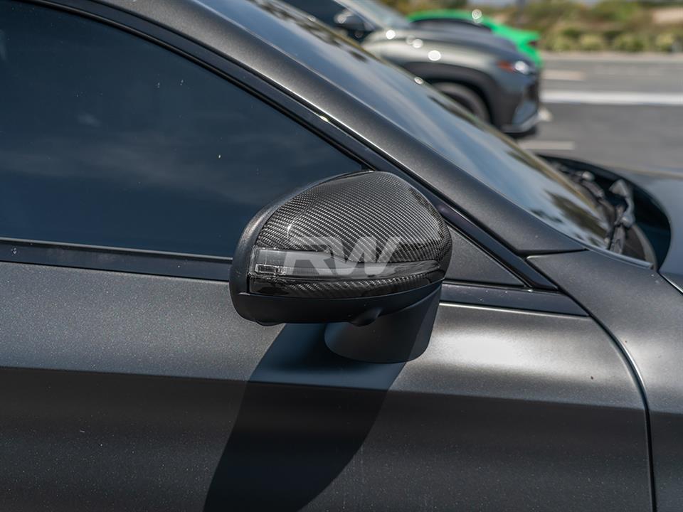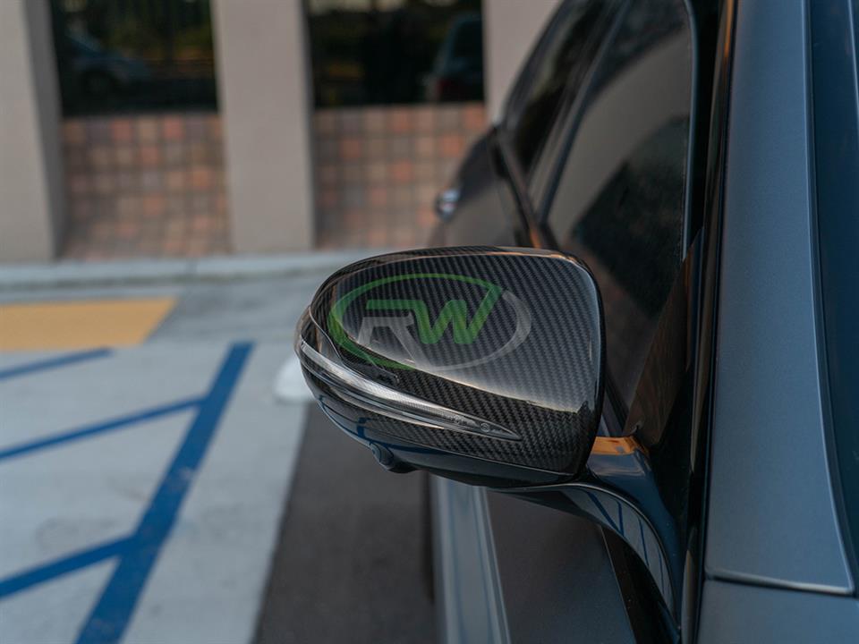 RW Carbon is now making carbon fiber mirror replacements for the new Mercedes W205, W213, C217, and W222 Models. These fit the C300, C400, C450, C43, and C63/C63SÂ AMGÂ models, as well as all 2014+ W222/C217 S Class and all 2016+ W213 E Class. These carbon fiber mirrors are caps full, replace your current mirror for a seamless finish that looks great from far and up close. Now each set of carbon fiber replacement mirrors features 100% carbon fiber construction! No plastic backing like the competitor products which allows our mirrors to last much longer and maintain a higher quality appearance. Each set of coated with a high-quality coat of clear for the brilliant shine and the best protection against the elements.