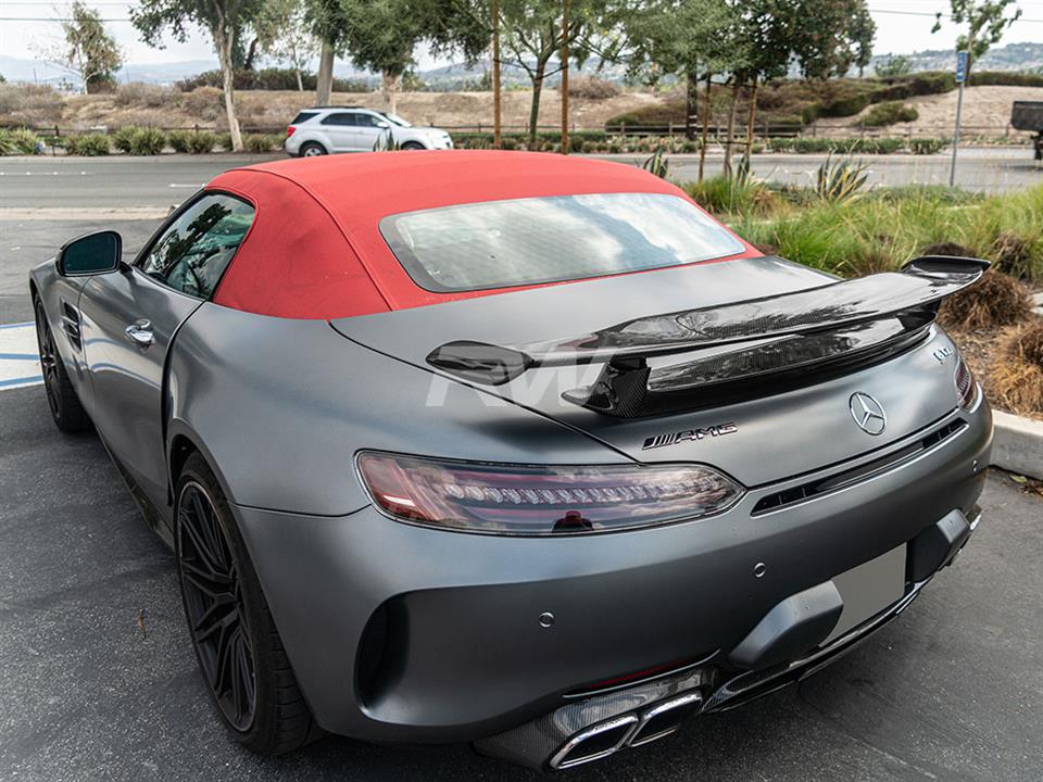 Want to enhance the already aggressive nature of your GT GTS or GTC Roadster? The search is over as this wing is your final destination. This wing is by far one of the most aggressive wings that RW Carbon has to offer. With bolt on installation, this wing is ready to be installed onto the car straight out of the box however is always recommended to be done by a professional. Fitting the facelift 2018+ models of the R190 GT GTS GTC Roadster convertibles, this wing along with the majority of our other parts are made from the traditional 2×2 carbon fiber weave to ensure it blends in with any other carbon fiber on the car. When you order this roaster wing you will receive all needed items to install it on your vehicle (OEM reverse light, OEM wiring harness, weather stripping). This wing is always backed by our fitment and quality guarantee to ensure you receive a superb item each order.