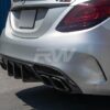 Ditch your existing plastic diffuser and replace it with this facelift W205 DTM carbon fiber diffuser for that race inspired rear end look! This diffuser is designed to fit with your larger C63s facelift exhaust tips; however can also fit the C43 and C class models so long as you upgrade to the C63s facelift style exhuast tips from us. Each of our DTM carbon fiber rear diffusers feature 2×2 CF construction and bolt on installation that makes this piece a must have for all enthusiasts. After manufacturing we complete each facelift DTM diffuser with a UV resistant clearcoat to ensure the item does not fade or discolor. When you opt to order your carbon fiber facelift diffuser from RW Carbon you will receive all necessary items to install the diffuser on your car (if you have a pre facelift please contact us before ordering). Please note for best fitment it is required that you remove the rear bumper for installation, should you need help with this in the Southern California area please contact us.
