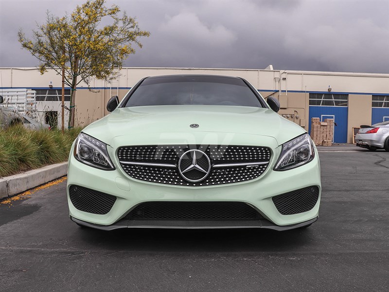 Finally a solution for that unsightly chrome lip that comes on the 2015-2018 C300, C400, and C450. Our newly revised W205 carbon fiber lip is now a full replacement. Unclip your factory chrome bumper trim and replace it with our carbon fiber trim for an upgraded style. We construct this carbon fiber front lip utilizing the OEM counterpart to ensure fitment is superb. The Mercedes W205 C Class carbon fiber lip features 2×2 carbon fiber weave and finished with a nice clear coat to ensure no fading or discoloration happens. If you have any questions, please contact us.