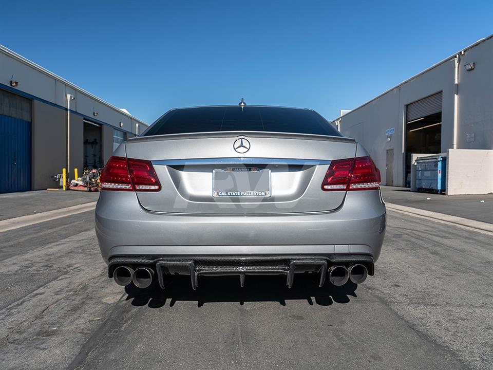 RW Carbon is very proud to introduce the newest item for your 2010-2013 Mercedes W212 E63 AMG, the Renn style carbon fiber rear diffuser. If you are looking for the most aggressive and over the top look for your E63 – This is your piece. This thing is big and bold and will have everry set of eyes draw to your W212 Mercedes. We handcraft each W212 E63 Renn style carbon fiber diffuser from genuine carbon fiber that is then finished with a clear coat to ensure no fading or discoloration over time. Fits sedan applications, and will not fit the facelift W212 model. In order to install this diffuser the rear bumper will need to be removed. If you have questions, please contact us .