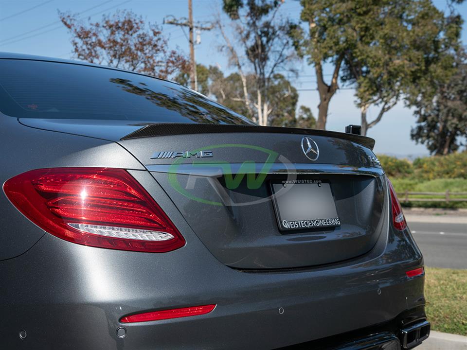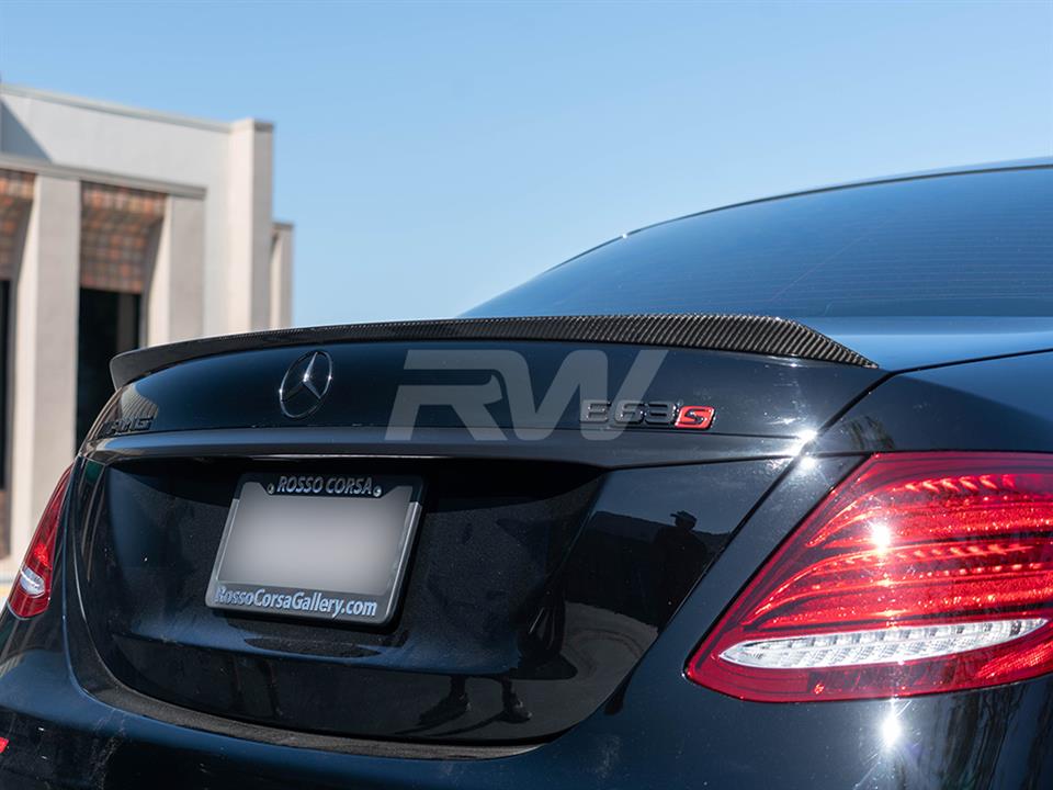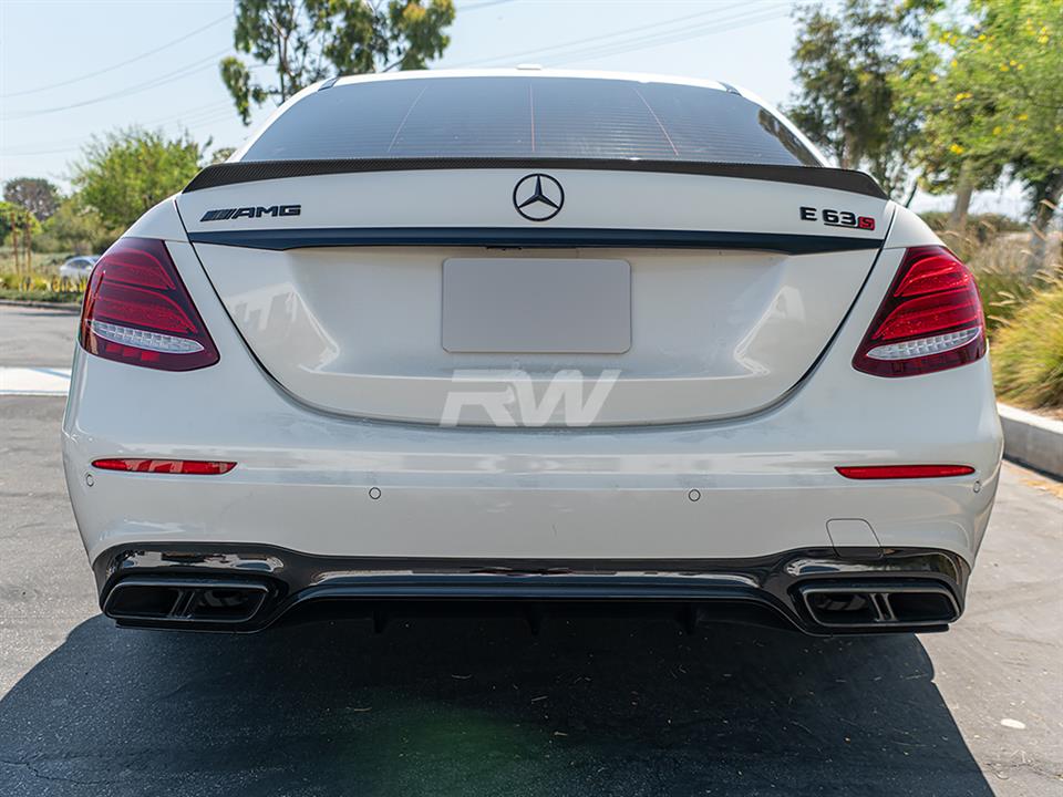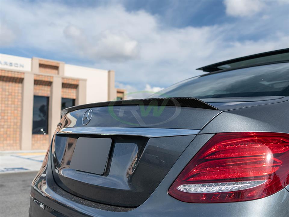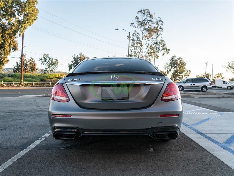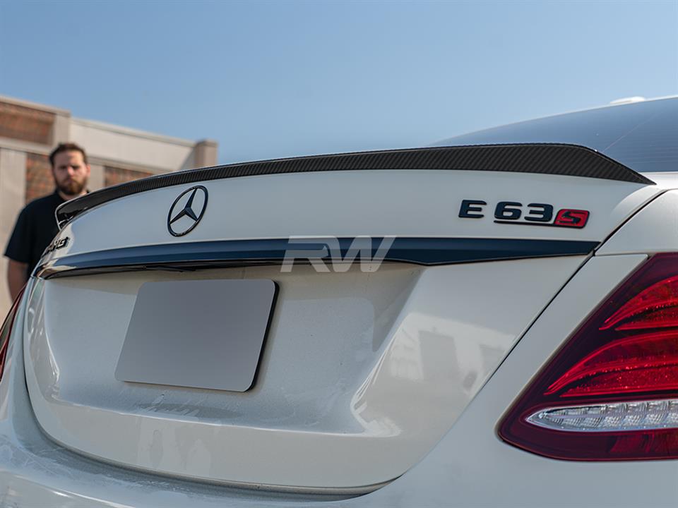 Adding a new carbon fiber trunk spoiler to your W213 E Class or E63S is the perfect first or next carbon fiber addition. These Edition 1 style CF trunk spoilers are easy to mounting using 3M tape and can be installed in under an hour. The styling of this spoiler is similar to the OEM Mercedes trunk spoiler from the Edition 1 W213 E63, which is a great combination of classy and sporty. Each spoiler is handcrafted from genuine 2×2 carbon fiber that will nicely match OEM Mercedes carbon fiber or RW parts. After manufacturing, we complete each spoiler with a UV-resistant clear coat which ensures it maintains a nice luster for years to come. Trust RW when it comes to all things W213 sedan, especially these edition 1 style carbon fiber trunk spoilers!