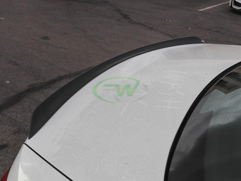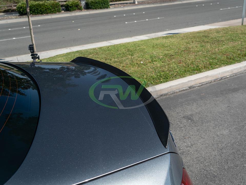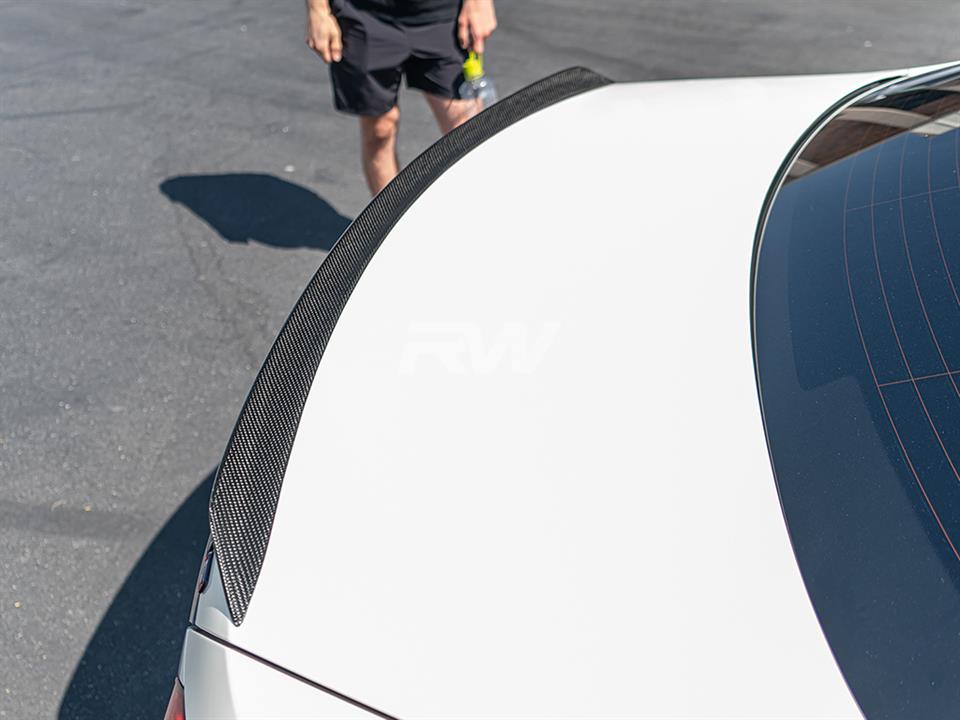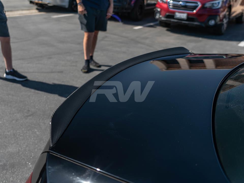 Installation of this trunk spoiler is relatively simple, only requiring double sided 3M VHB tape, which can be purchased at checkout. To ensure good fitment, RW Carbon recommends that this trunk spoiler be installed either by us, or at a reputable body shop. If you are not local to us please reach out and we can recommend someone. Please Note: If your car is ceramic coated, it will need to be buffed or polished off in the area that the trunk spoiler attaches prior to installing the spoiler. The 3M tape and promoter does not adhere properly when the car is ceramic coated.