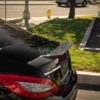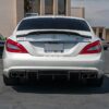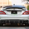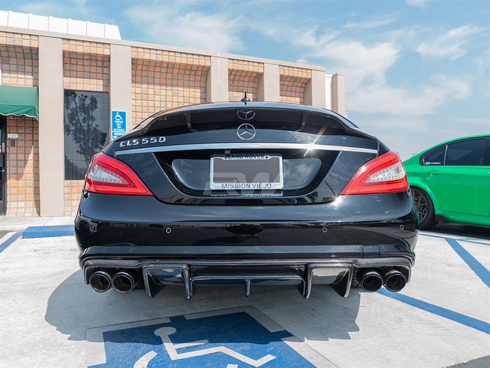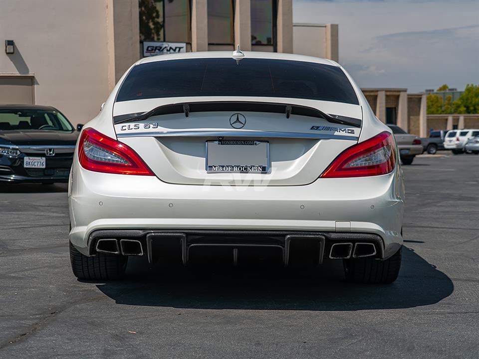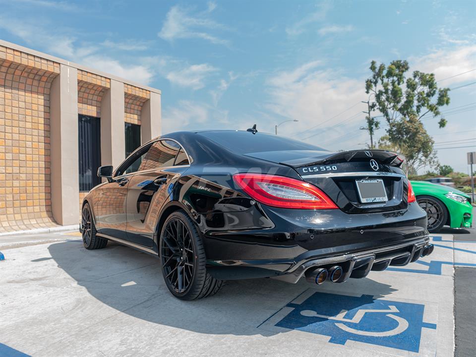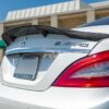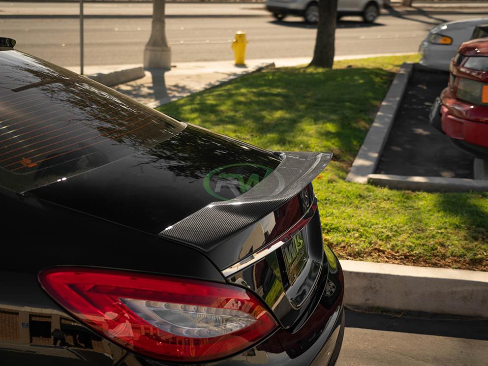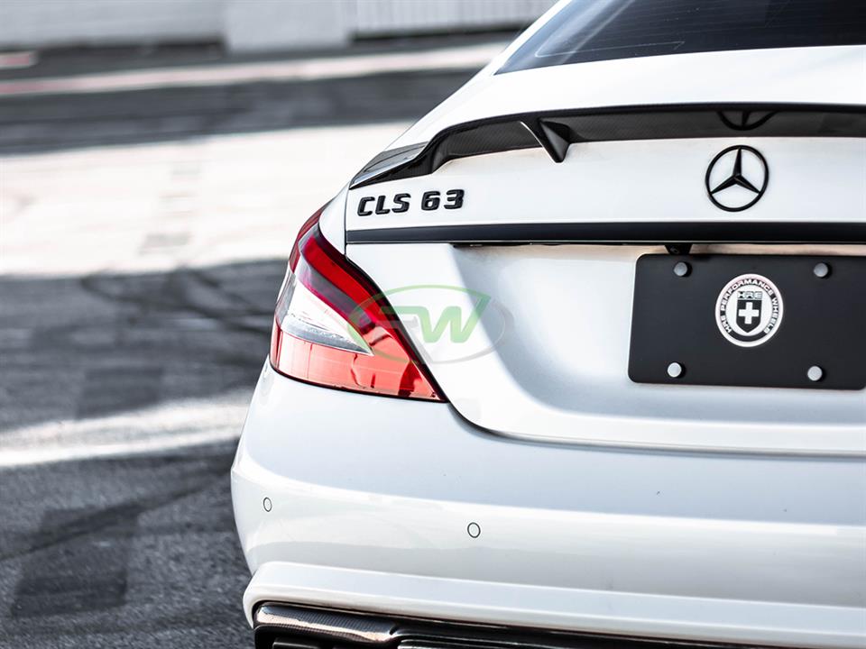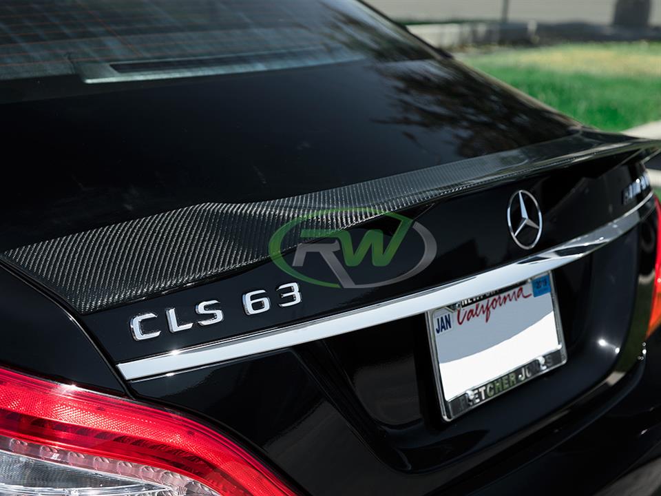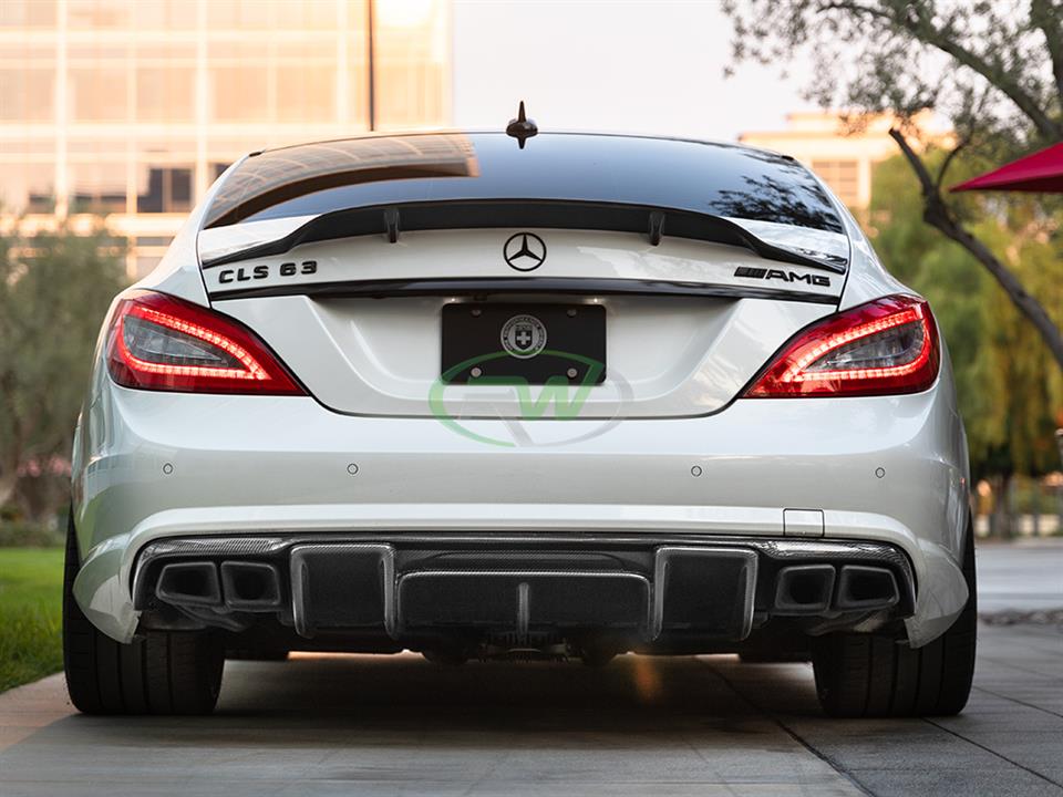 If you are looking for the biggest and most aggressive trunk spoiler for you Mercedes W218 CLS550 or CLS63 AMG then you have come to the right place. This Renn style carbon fiber trunk spoiler is about as big as it gets and goes great with our renn style diffuser. Both have extreme features that will make sure your w218 CLS stands out from the rest. This renn style CF trunk spoiler is contructed using real carbon fiber, unlike some of the cheaper options out on the market that are hydrodipped with a CF pattern. Being made with real carbon fiber, makes our spoiler lighter, stronger and more durable. Plus fake carbon fiber can never compete with the depth and shine of a true clear coat on real carbon fiber fabric. This trunk spoiler has a 2×2 carbon fiber weave that will perfectly match any other carbon fiber exterior parts you have on your W218 from RW Carbon. To ensure no fading or discoloring occurs we complete each piece with a thick high quality clearcoat. Installation is completed with 3M tape, no drilling required.