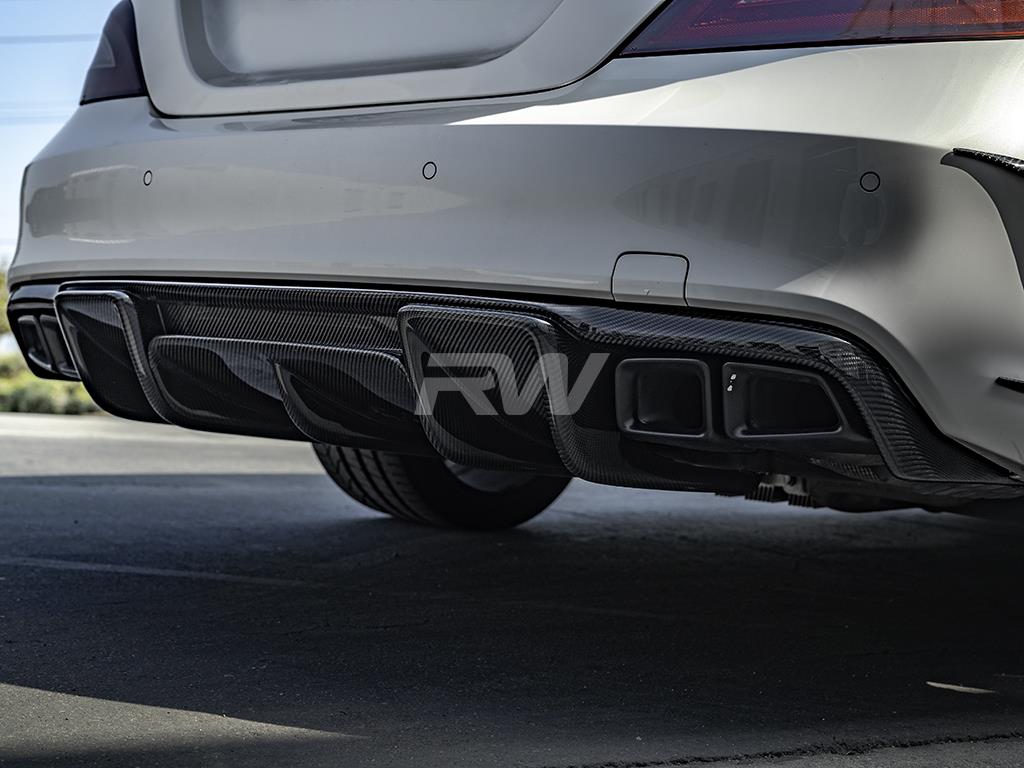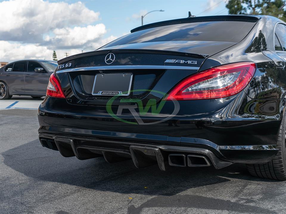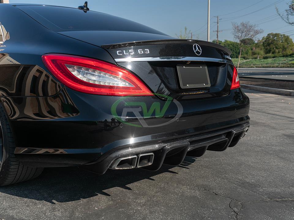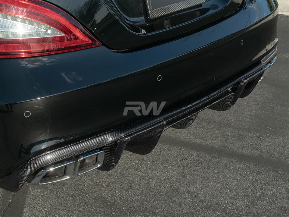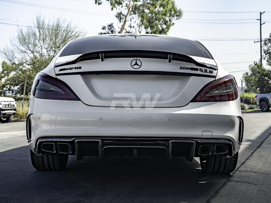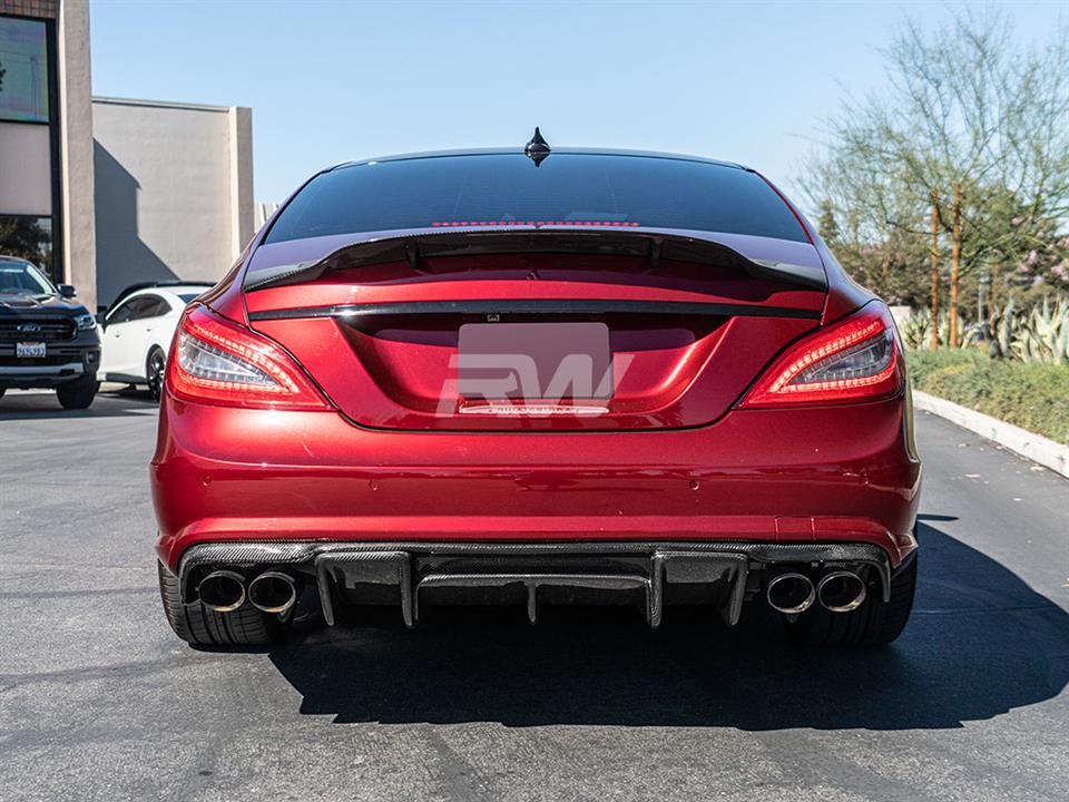 Obtain the most aggressive rear-end appearance for your 2012-2018 CLS63 with this RW Carbon Renn Style Carbon Fiber Rear Diffuser. Our CLS63 rear diffuser incorporates aggressive carbon fiber styling for the rear without a super-hefty price tag. Best of all this CLS63 diffuser takes the place of your existing plastic diffuser which will re-use some OEM mounting locations and create a more secure fit. We finish all of these carbon fiber diffusers with a clear coat which makes them easy to clean and allows them to stand up to the elements. The rear bumper will need to be removed in order to properly install this diffuser so we recommend having a local shop do the install for you. Whether you’re looking for that one unique exterior piece or already have a carbon exterior theme, our Renn style Carbon Fiber Rear Diffuser is an awesome upgrade for your W218 CLS63.