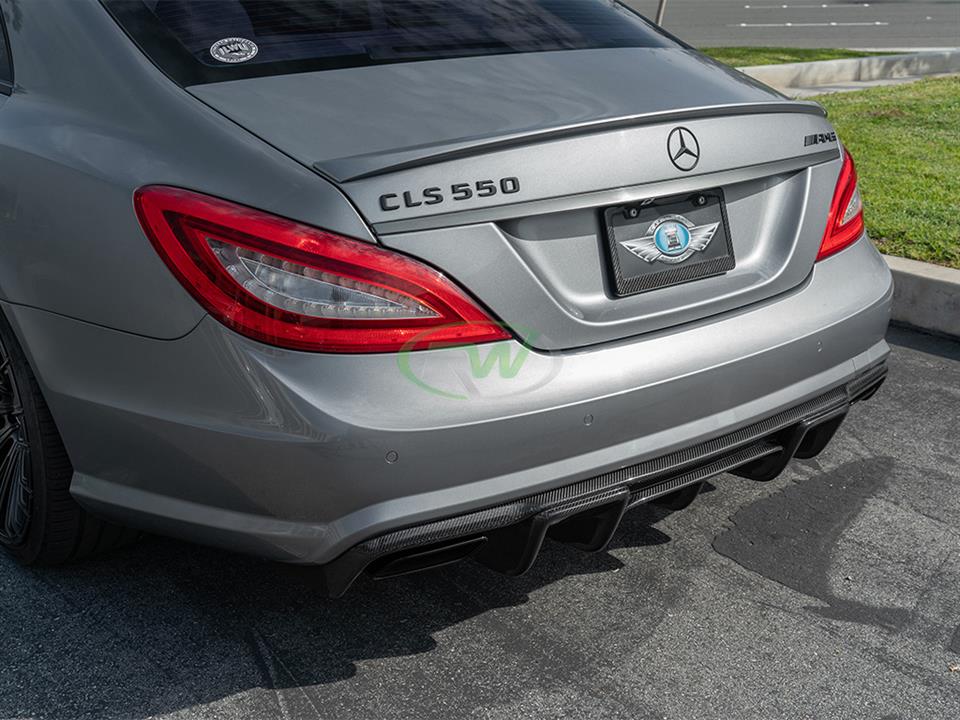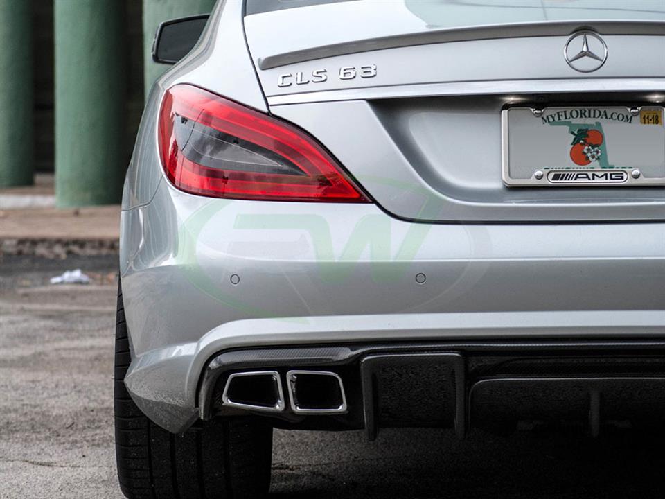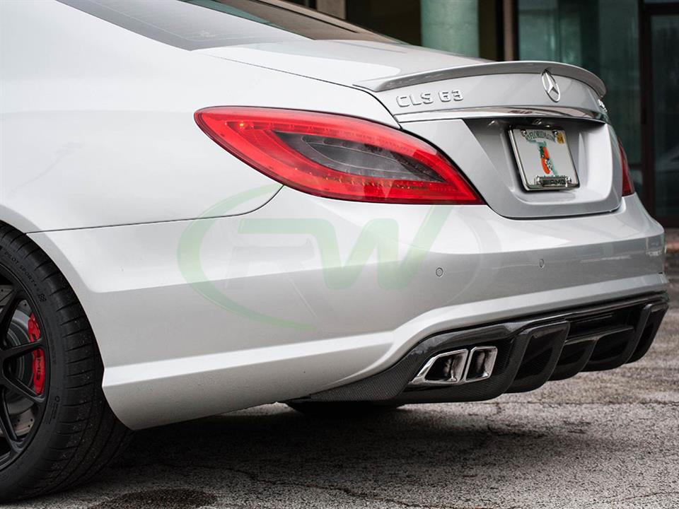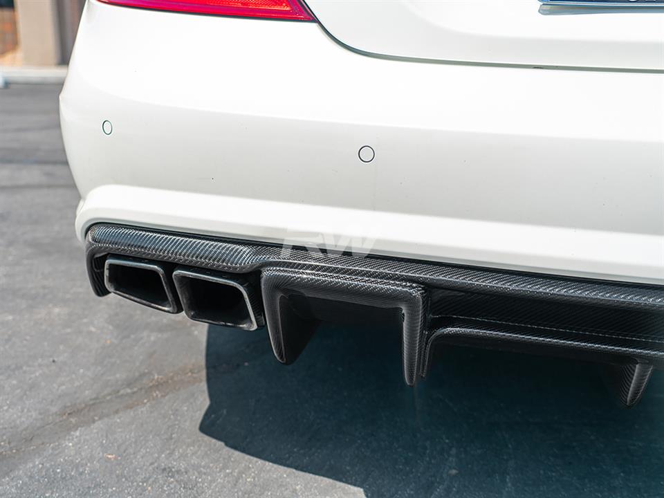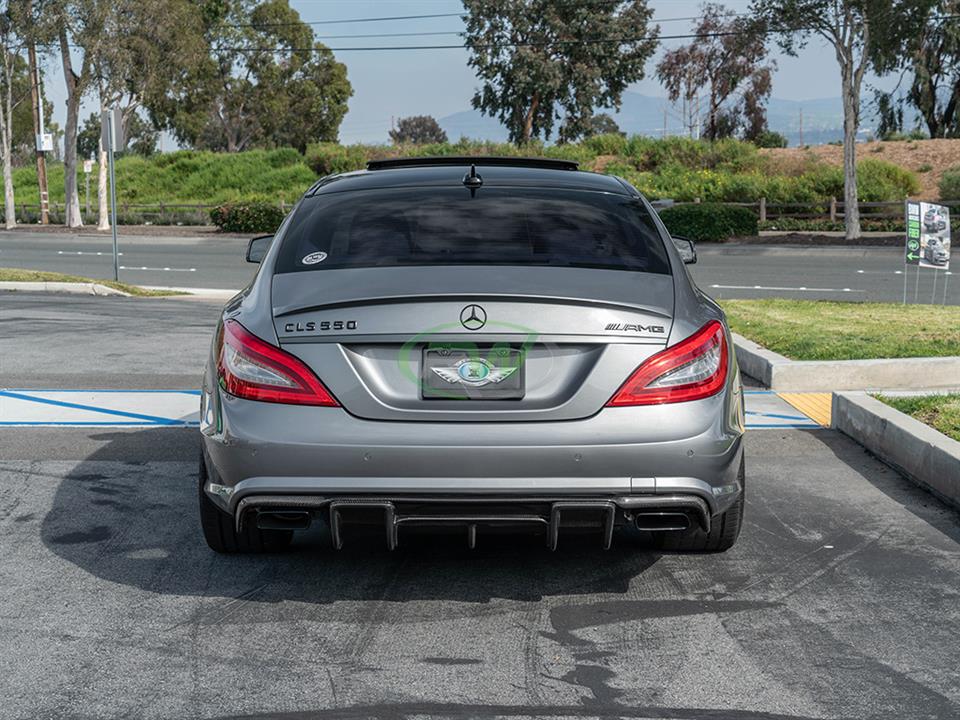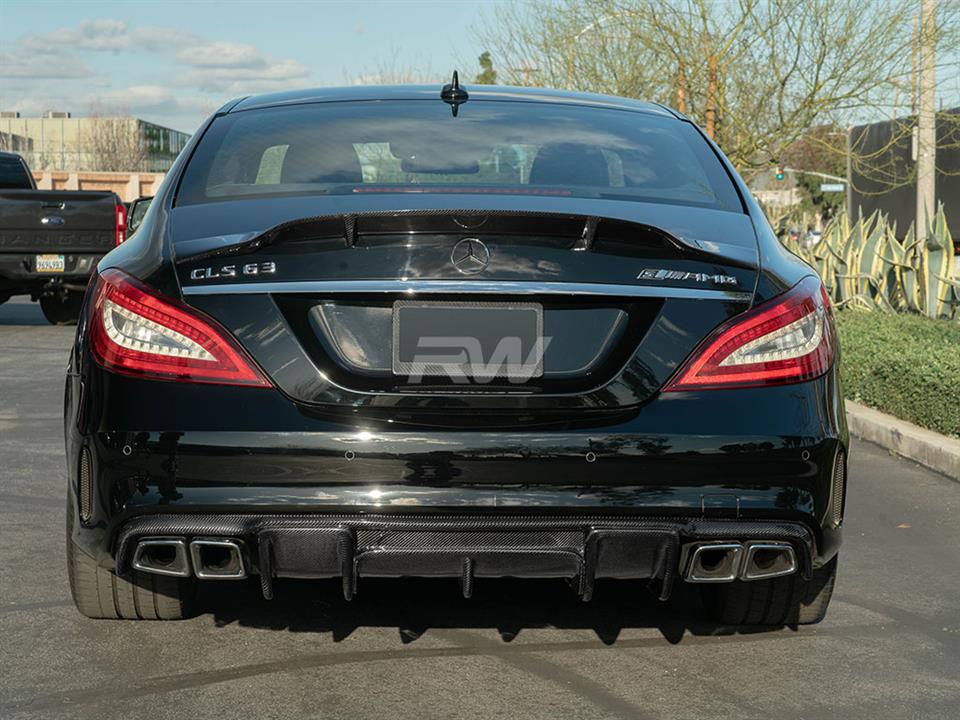 Obtain the most aggressive rear-end appearance for your 2012-2018 CLS63 with this RW Carbon Renn Style Carbon Fiber Rear Diffuser. Our CLS63 rear diffuser incorporates aggressive carbon fiber styling for the rear without a super-hefty price tag. Best of all this CLS63 diffuser takes the place of your existing plastic diffuser which will re-use some OEM mounting locations and create a more secure fit. We finish all of these carbon fiber diffusers with a clear coat which makes them easy to clean and allows them to stand up to the elements. The rear bumper will need to be removed in order to properly install this diffuser so we recommend having a local shop do the install for you. Whether you’re looking for that one unique exterior piece or already have a carbon exterior theme, our Renn style Carbon Fiber Rear Diffuser is an awesome upgrade for your W218 CLS63.