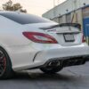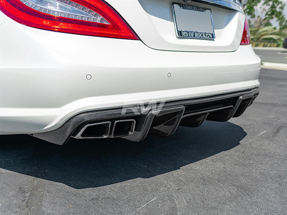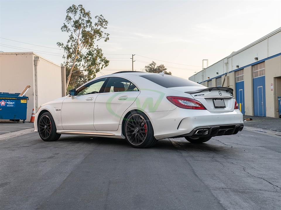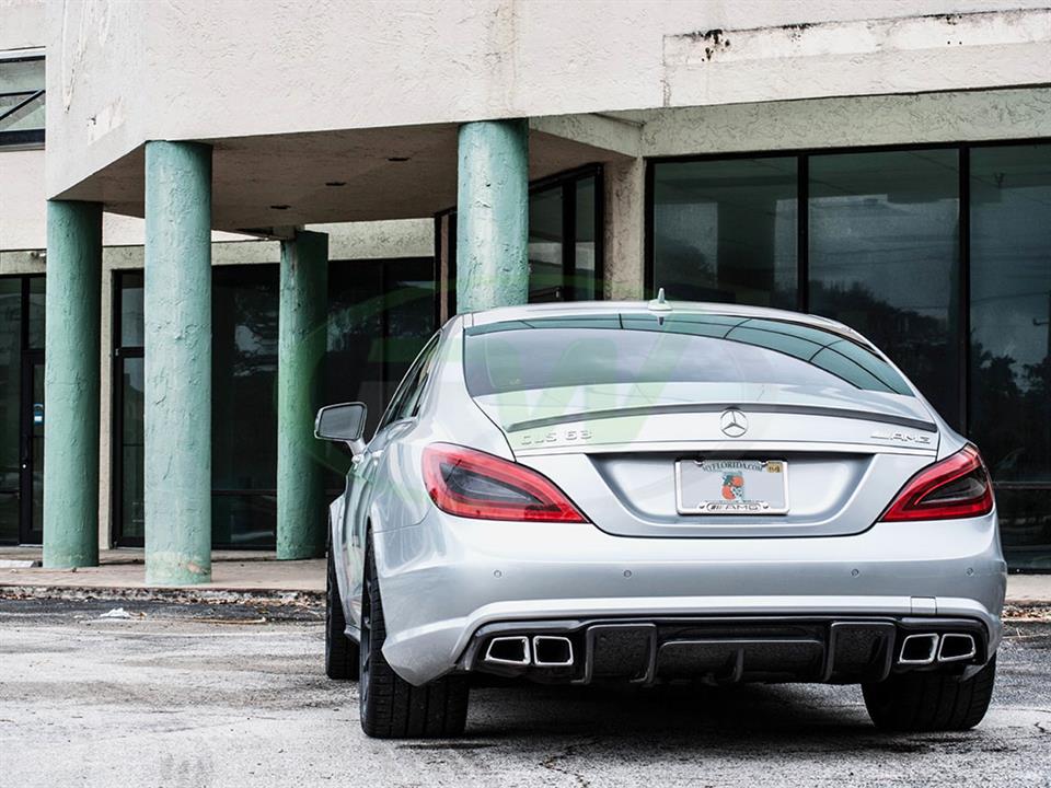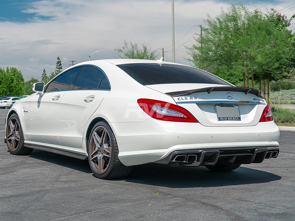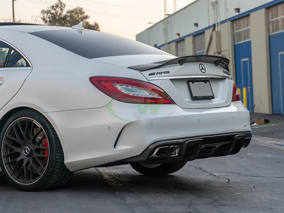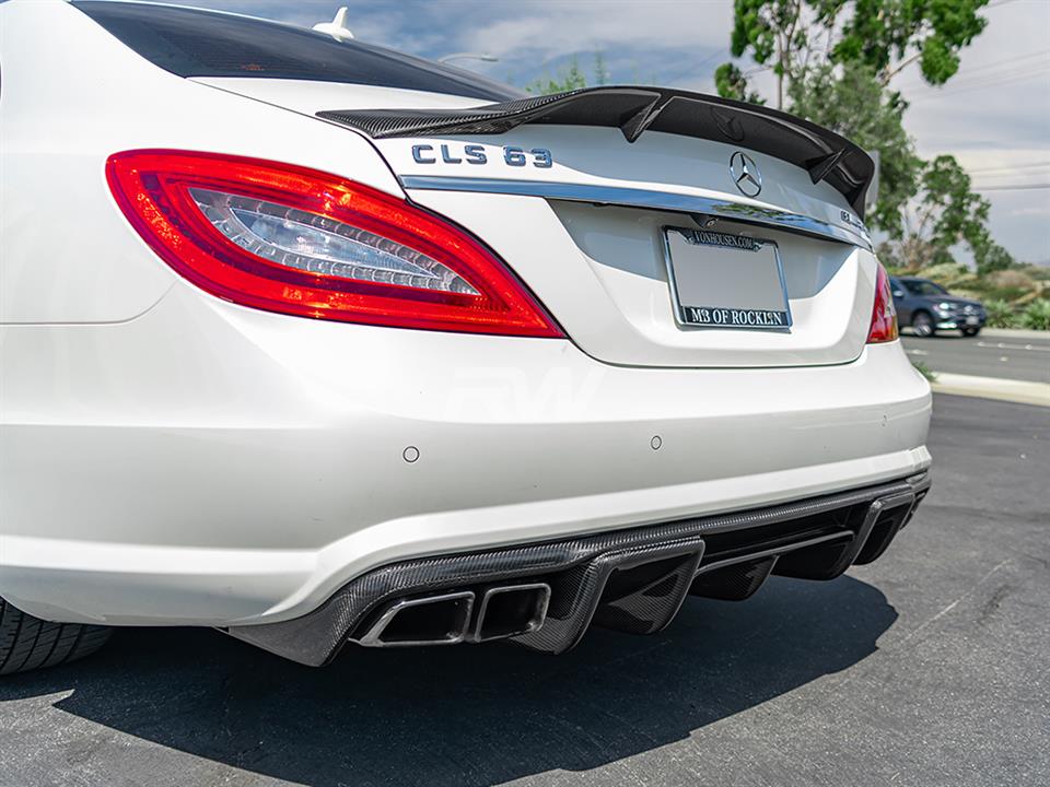 Obtain the most aggressive rear-end appearance for your 2012-2018 CLS63 with this RW Carbon Renn Style Carbon Fiber Rear Diffuser. Our CLS63 rear diffuser incorporates aggressive carbon fiber styling for the rear without a super-hefty price tag. Best of all this CLS63 diffuser takes the place of your existing plastic diffuser which will re-use some OEM mounting locations and create a more secure fit. We finish all of these carbon fiber diffusers with a clear coat which makes them easy to clean and allows them to stand up to the elements. The rear bumper will need to be removed in order to properly install this diffuser so we recommend having a local shop do the install for you. Whether you’re looking for that one unique exterior piece or already have a carbon exterior theme, our Renn style Carbon Fiber Rear Diffuser is an awesome upgrade for your W218 CLS63.