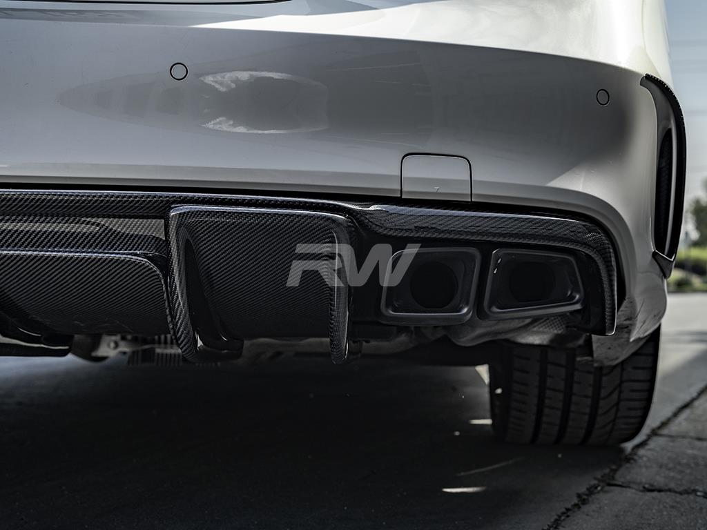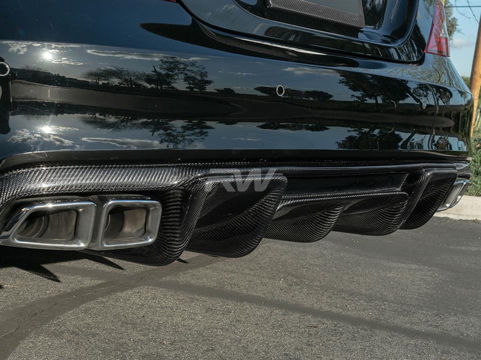 Professional installation is always recommended for RW Carbon’s products including this carbon fiber CLS63 rear diffuser. Removing the rear bumper is highly recommended for this diffuser to fit properly. Please test fit and clean the applied area before installation. This installation is rather involved and will require screws/drill. If you are local to RW Carbon please contact us and we can install it for you.