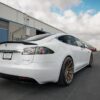 Presenting RW Carbon’s newer and more aggressive styled carbon fiber trunk spoiler for the Tesla Model S. The smaller trunk spoiler we carry is similar in size to the one you can get from Tesla. For any Tesla Model S owners who want a more aggressive looking trunk we have your answer. This spoiler is made using our high strength and lightweight 2×2 weave carbon fiber fabric. Like all of our other Tesla Model S parts it is clear coated for a glossy finish. These trunk spoiler are all shipped and quality checked in our Southern California facility prior to shipping worldwide. Installation is a breeze and only requires 3M tape which can be purchased at checkout. They will fit all 2013+ Tesla Model S.