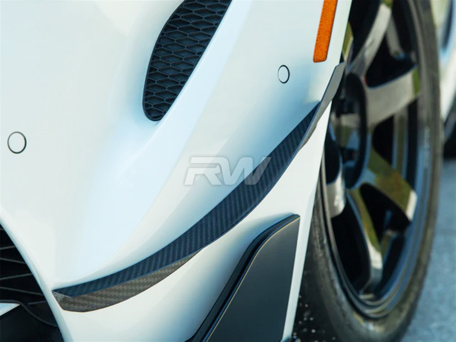 Add some aggressive flair to the front end of your A90 Supra with our Carbon Fiber Canards! These canards are crafted from genuine 2×2 weave carbon fiber for an authentic look that complements other carbon components. Each piece is finished with a UV-resistant gloss clear coat for lasting shine and protection. The set includes both left and right canards designed for a direct fit on 2020+ Toyota A90 Supra front bumper. They mount easily using automotive-grade 3M tape and promoter for secure adhesion. If you have any questions regarding this part, feel free to contact us!