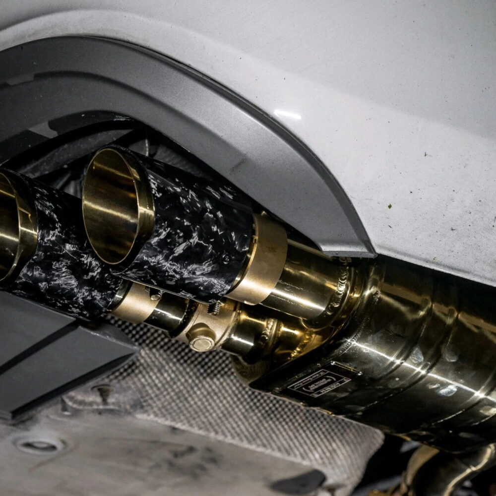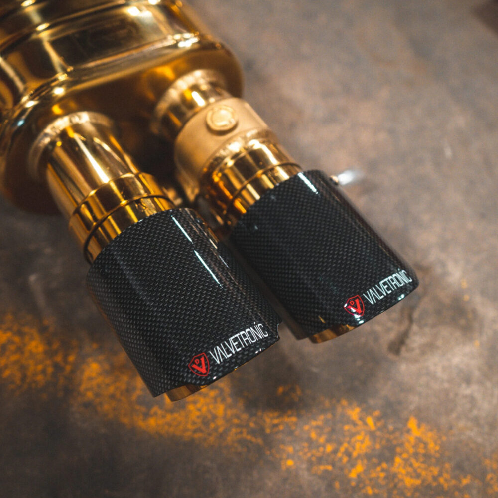| Tips | (4) Brushed Steel (3.5" Outlet), (4) Burnt (3.5" Outlet), (4) Black (3.5" Outlet), (4) Carbon Fiber 1×1 (3.5" Outlet), (4) Forged Carbon fiber (3.5" Outlet) |