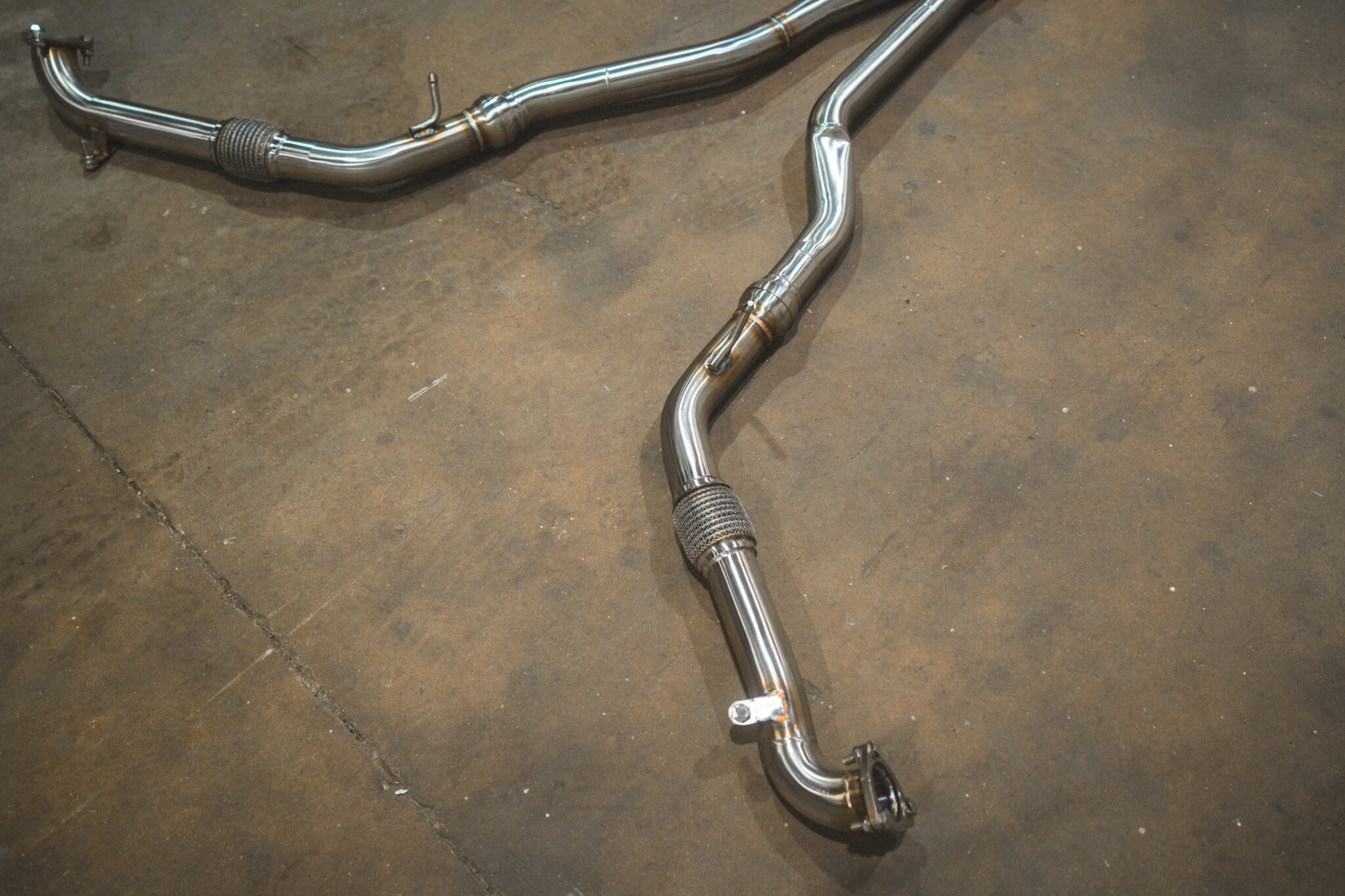 Unlike typical setups requiring multiple components from different vendors, our system is engineered as a complete solution—from the OEM or aftermarket downpipe all the way to the exhaust tips. This single-package design eliminates the need for mixing and matching resonator sections or axle-backs from other brands, ensuring perfect fitment, seamless performance, and consistent sound quality.