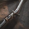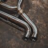 Connecting to OEM or aftermarket free-flow downpipes, this 2.75-inch system runs unrestricted from inlet to tip. In testing, we found that an unresonated design delivered the most engaging sound, producing pronounced pops and crackles when shifting, while maintaining a drone-free cabin with the valves closed.
