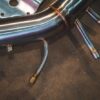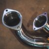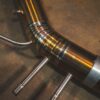 The V3 mid-pipe includes additional clearances at the downpipe connection and mid-section; small visible gaps prior to tightening are normal and by design.
