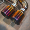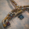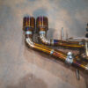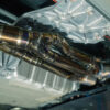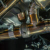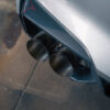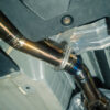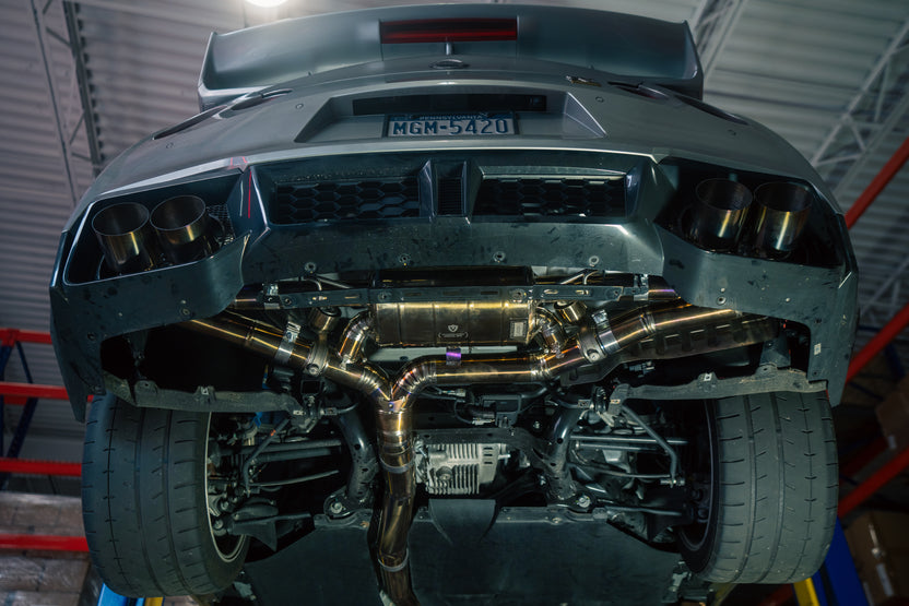 From there, the exhaust continues 3.5 inches unrestricted all the way back to our valved rear section. With the valves open, exhaust gasses exit uninterrupted through massive 5-inch titanium tips, delivering a raw, motorsport-inspired roar. Close the valves, and flow is redirected through a quad-chambered center muffler for refined sound levels, perfect for city driving or late-night cruising.